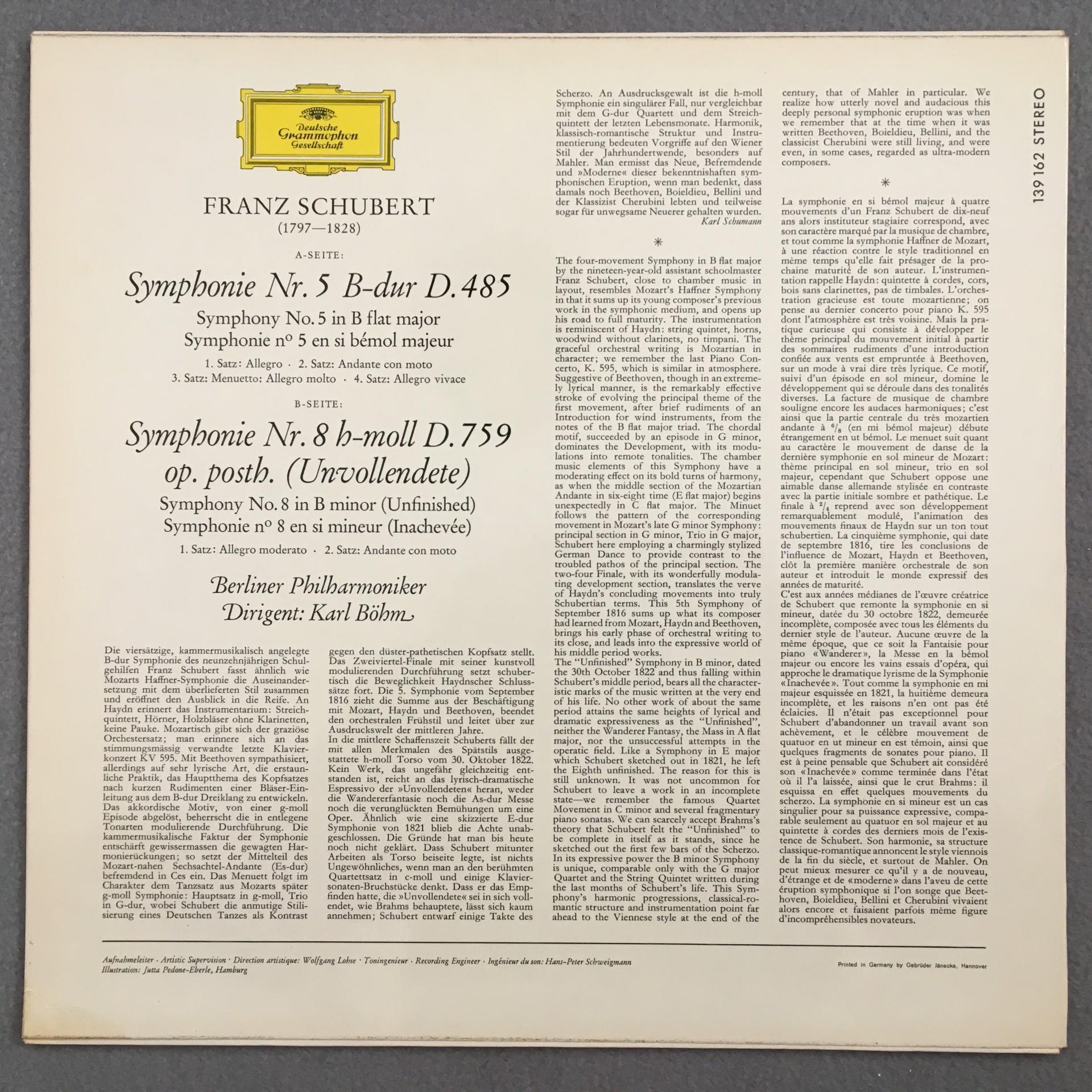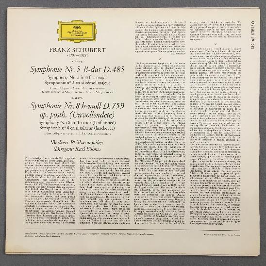 O251 Schubert Symphonies No.5 & No.8 Bohm BPO DGG 139 162 SLPM Stereo