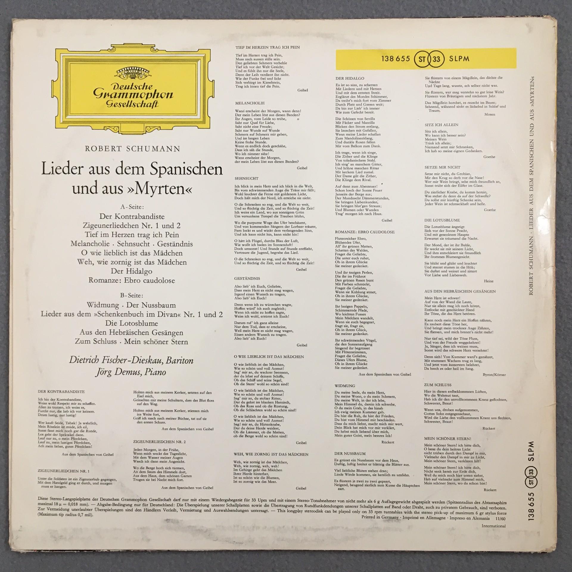 O259 Schumann From Myrtle Songs Spanish Fischer-Dieskau DGG 138 655 Red Stereo