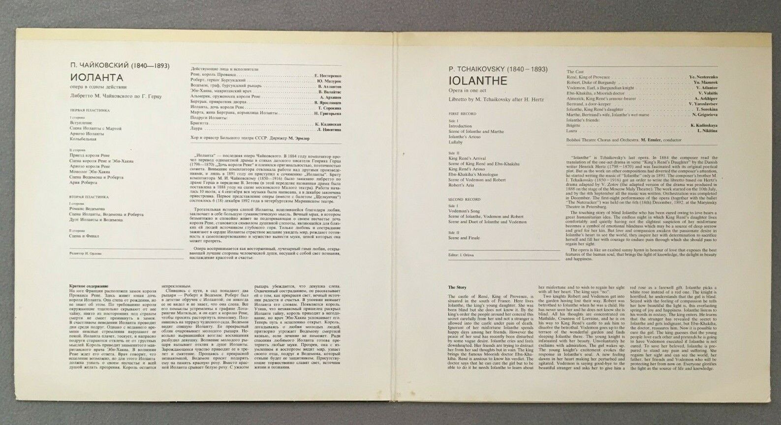 S085 Tchaikovsky Iolante Ermler 2LP Melodiya C 10-08343-6 Stereo