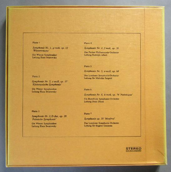 G516 Tchaikovsky 7 Symphonies Swarovsky VSO Sargent LSO 7LP KAT 76.002/1-7Stereo