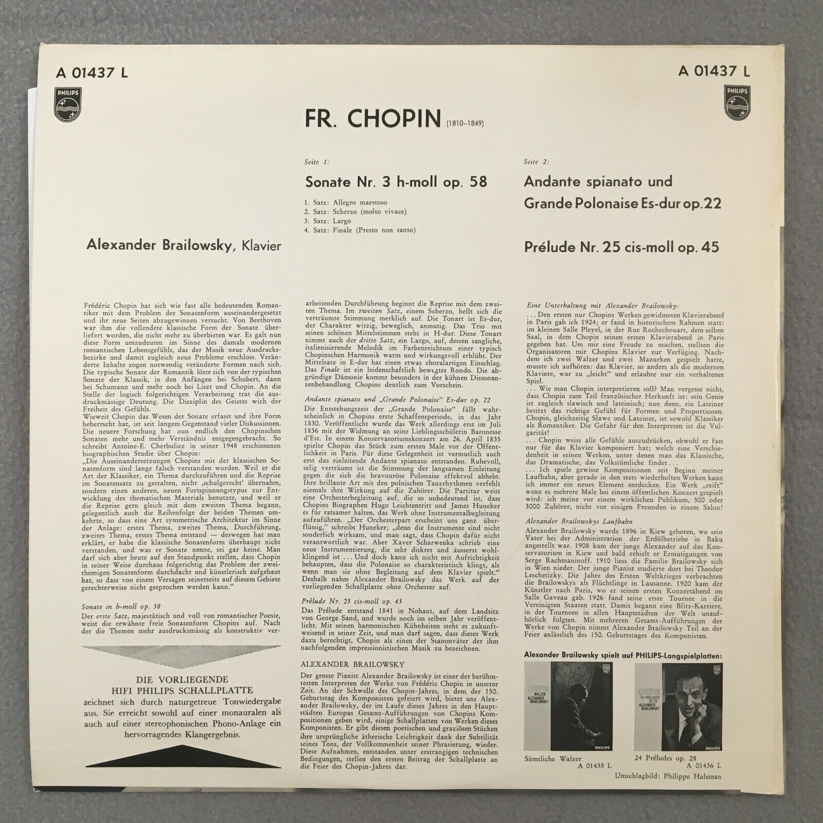 S839 Chopin Sonata Prelude Brailowsky Piano Philips Minigroove A 01437 L