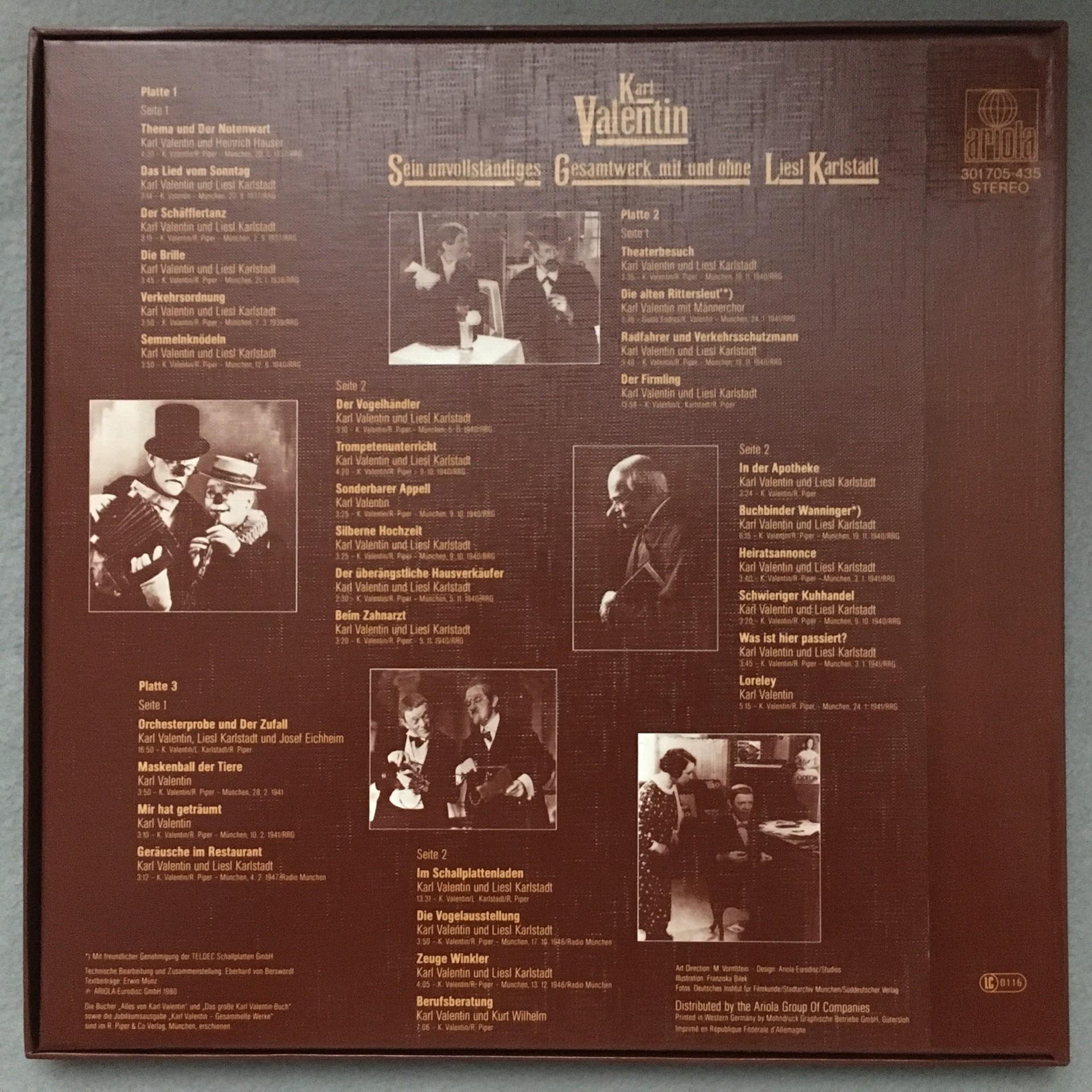 D702 Karl Valentin Complete Works Karlstadt 3LP Ariola 301 705-435 Stereo