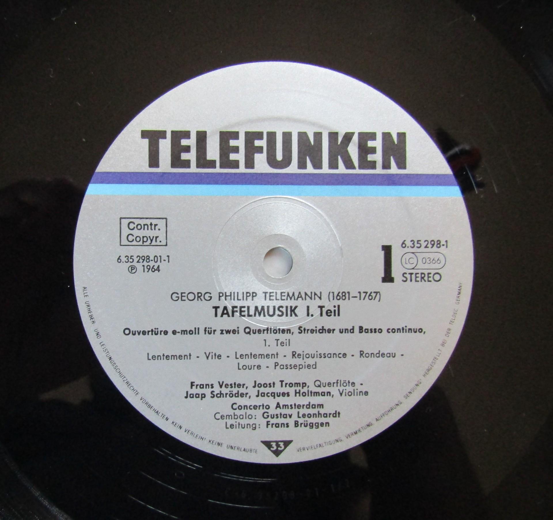 G530 Telemann Banquet Music Leonhardt Brüggen 6LP Telefunken 6.35298 FX Stereo