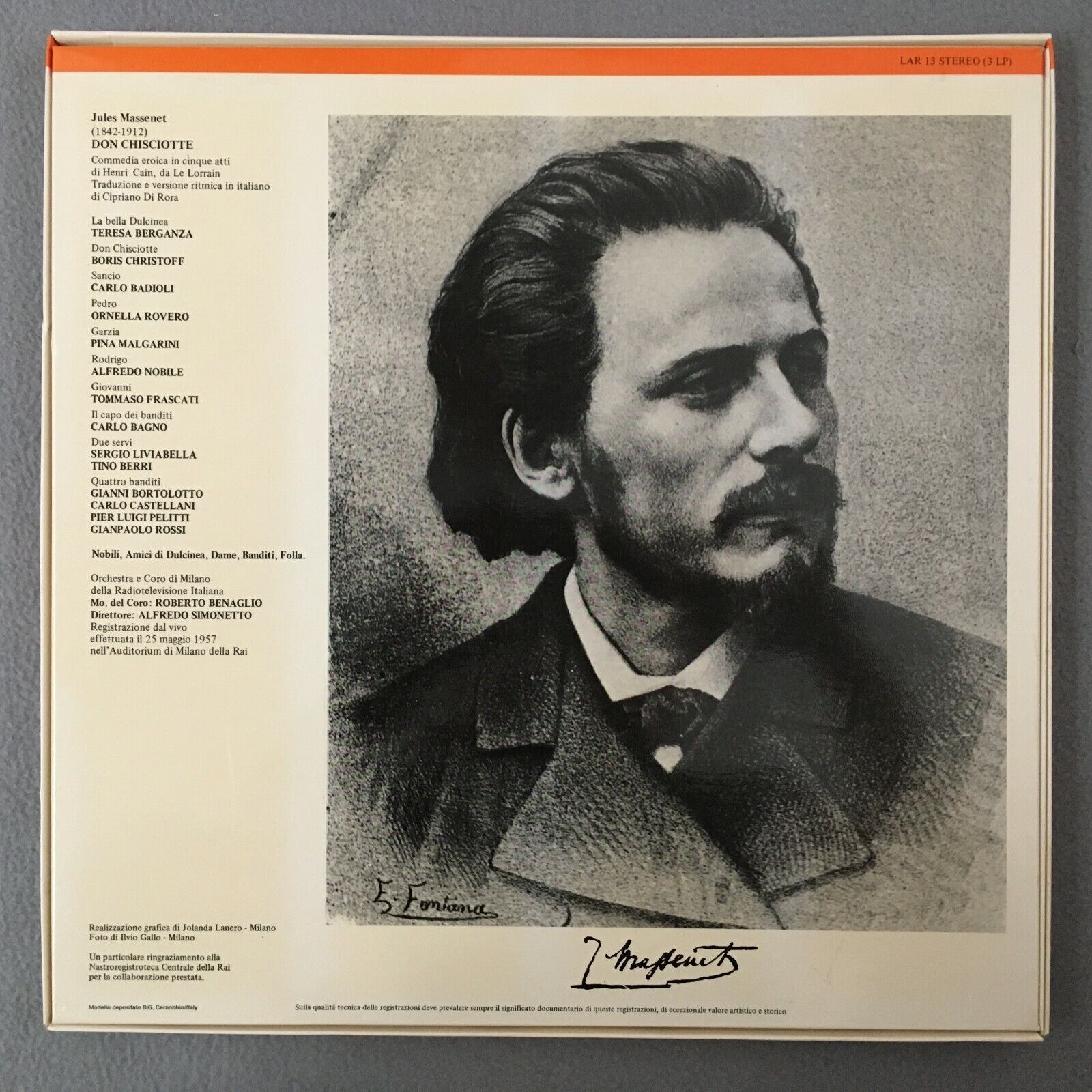 C257 Massenet Don Quixotte Berganza Simonetto 3LP Fonit Cetra LAR 13 Stereo