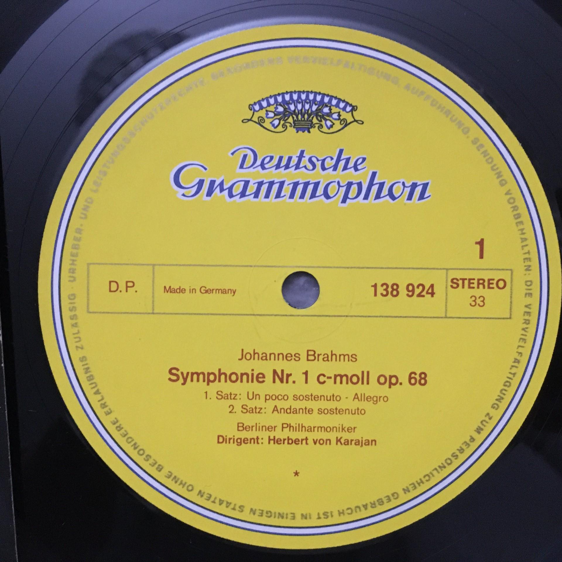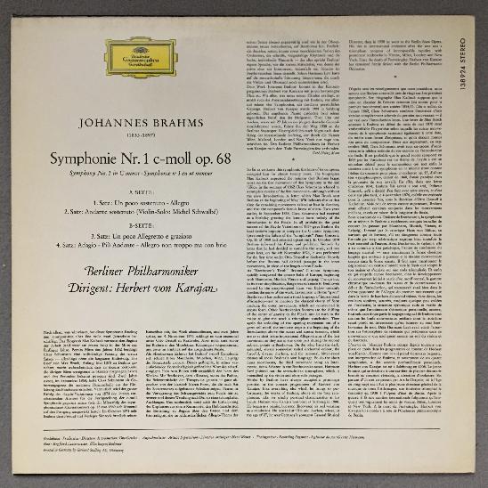O293 Brahms Symphony No.1 Karajan BPO DGG 138 924 SLPM Stereo
