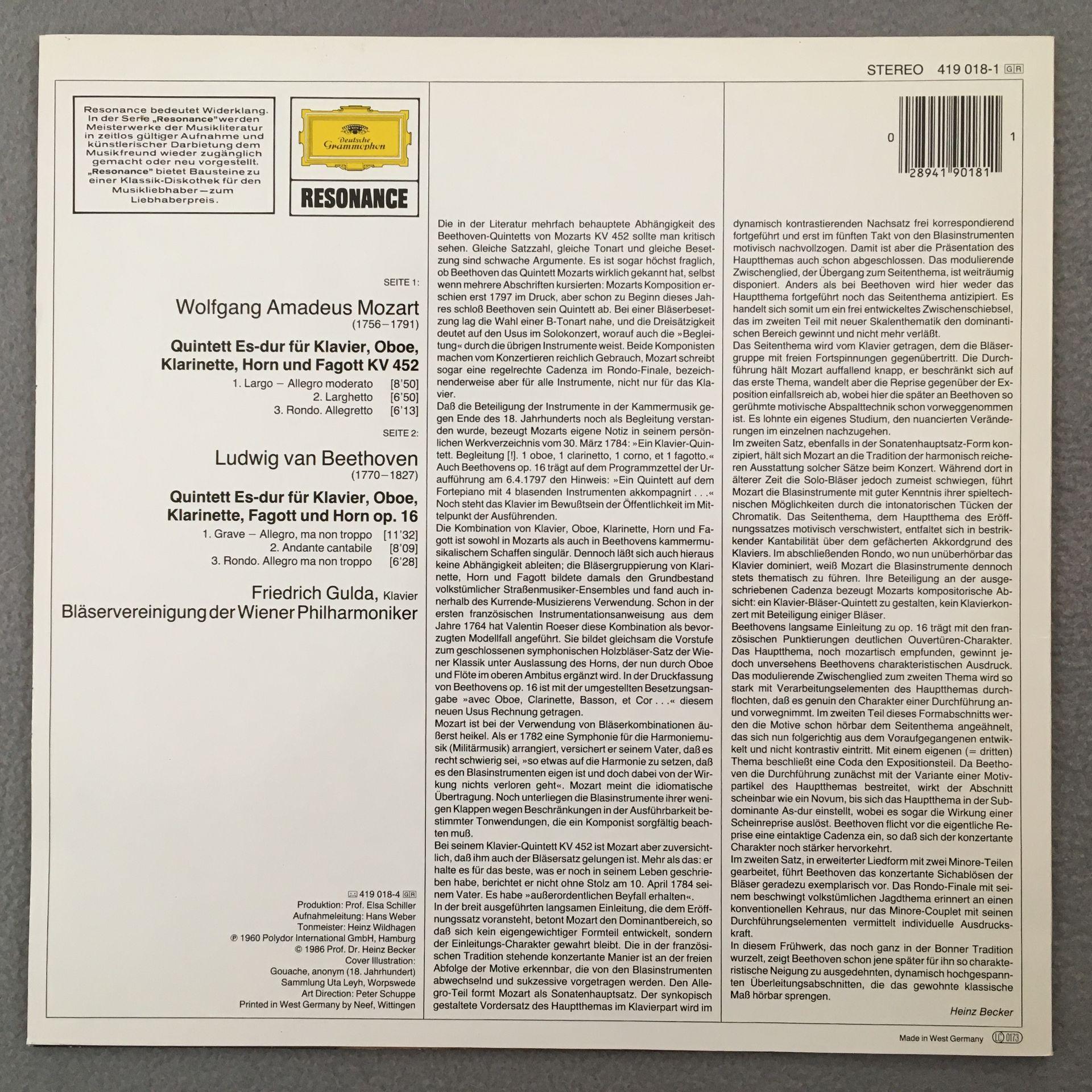 P018 Mozart Beethoven Quintets Gulda Winds of VPO DGG 419 018-1 Stereo