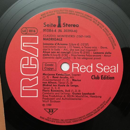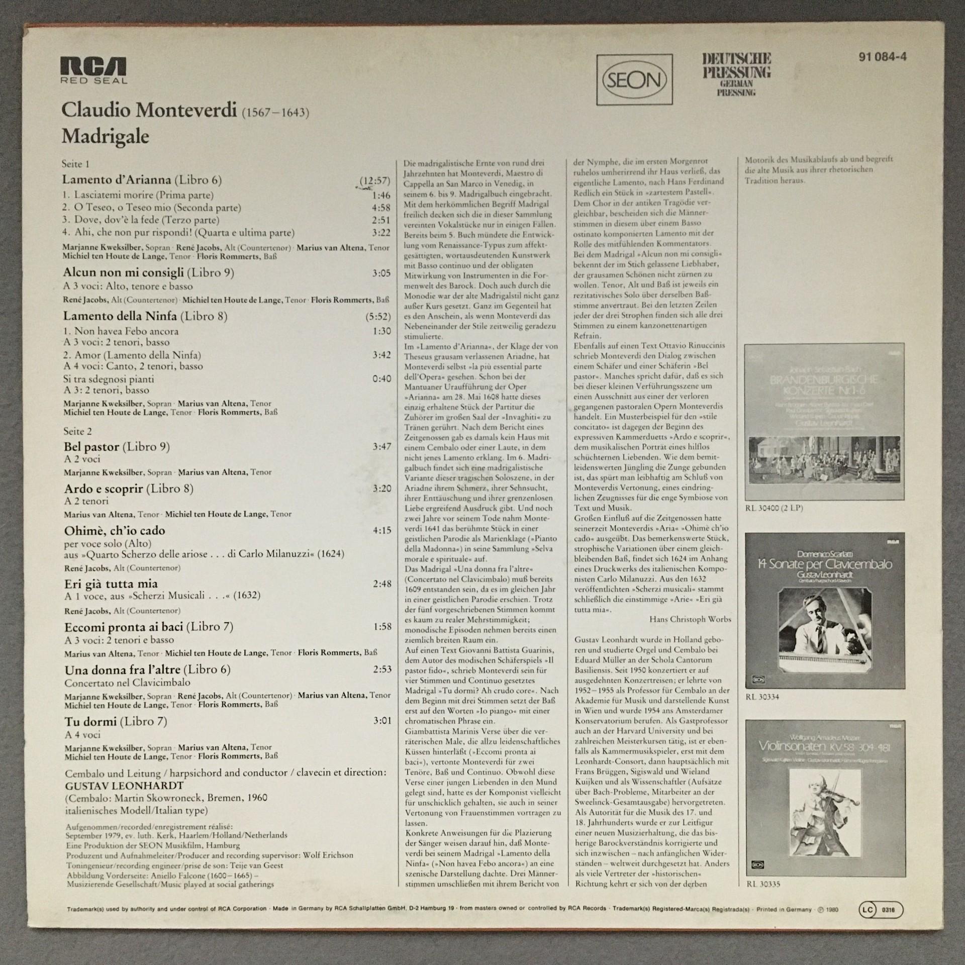 O321 Monteverdi Madrigale Jacobs Leonhardt RCA 91 084-4 Stereo