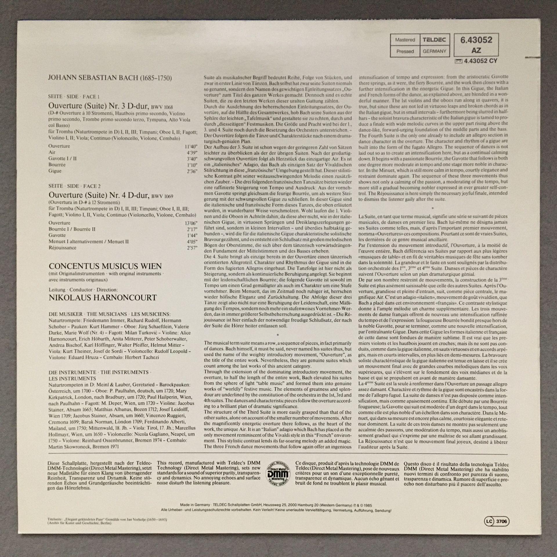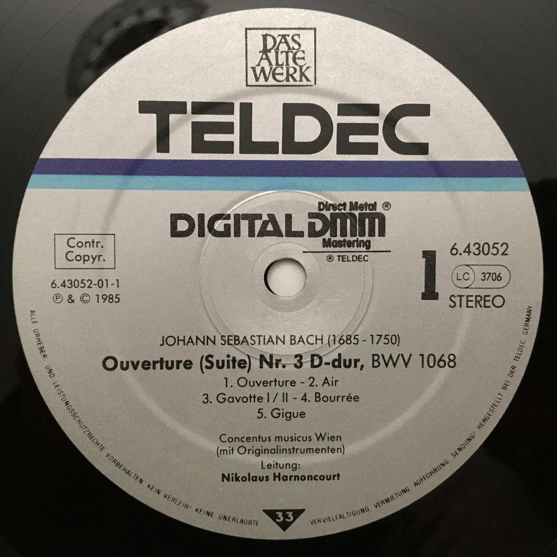O324 Bach Overtures Harnoncourt Concentus Musicus Teldec 6.43052 AZ Digit Stereo