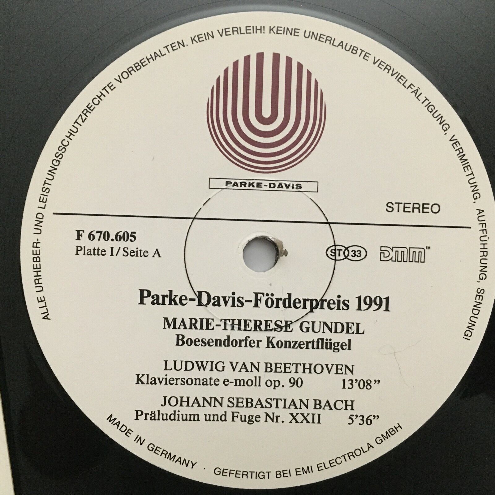 S862 Förderpreis 1991 Beethoven Bach Gundel 2LP Parke-Davis 670 604 Stereo