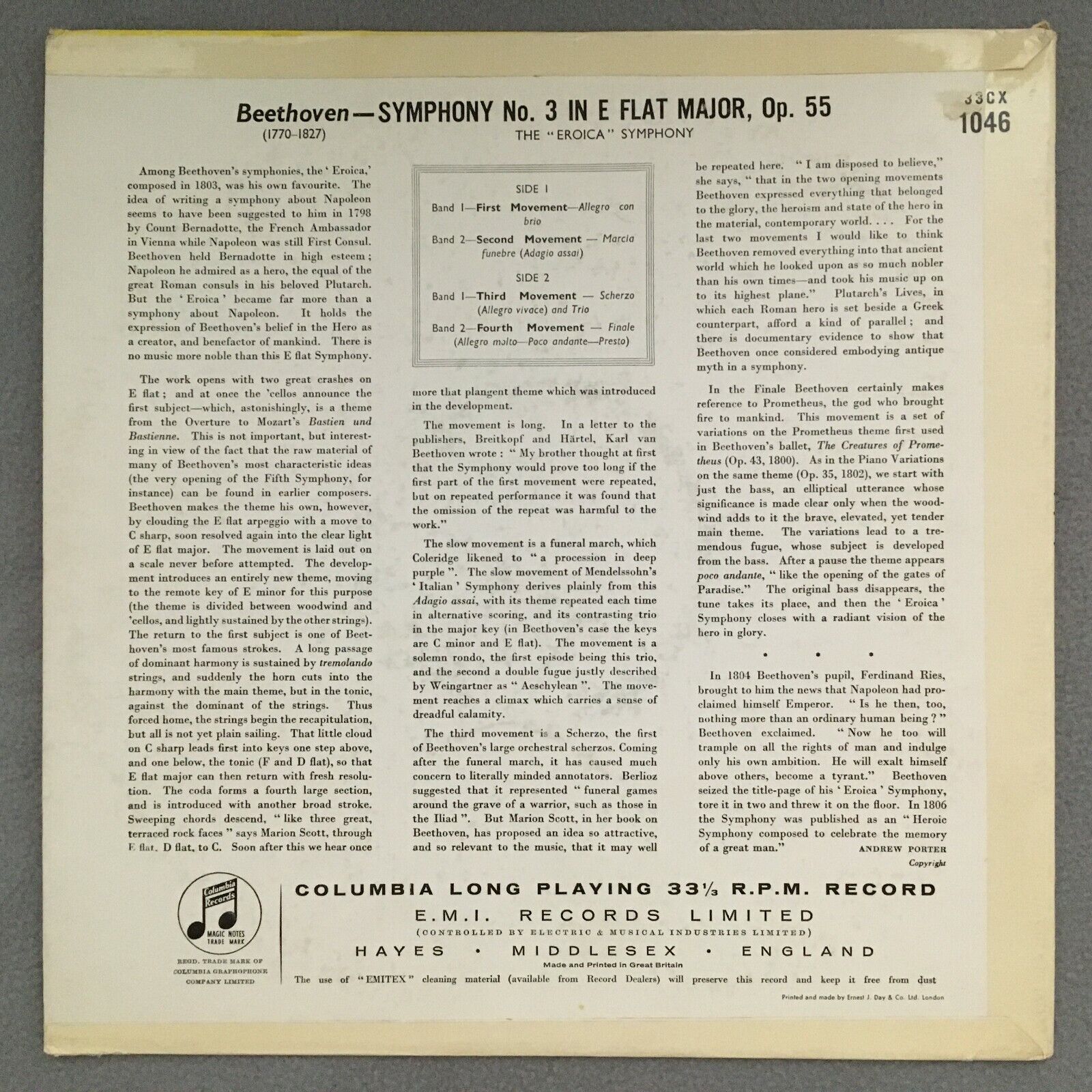 R933 Beethoven Symphony No.3 Eroica Karajan LPO Columbia 33CX 1046