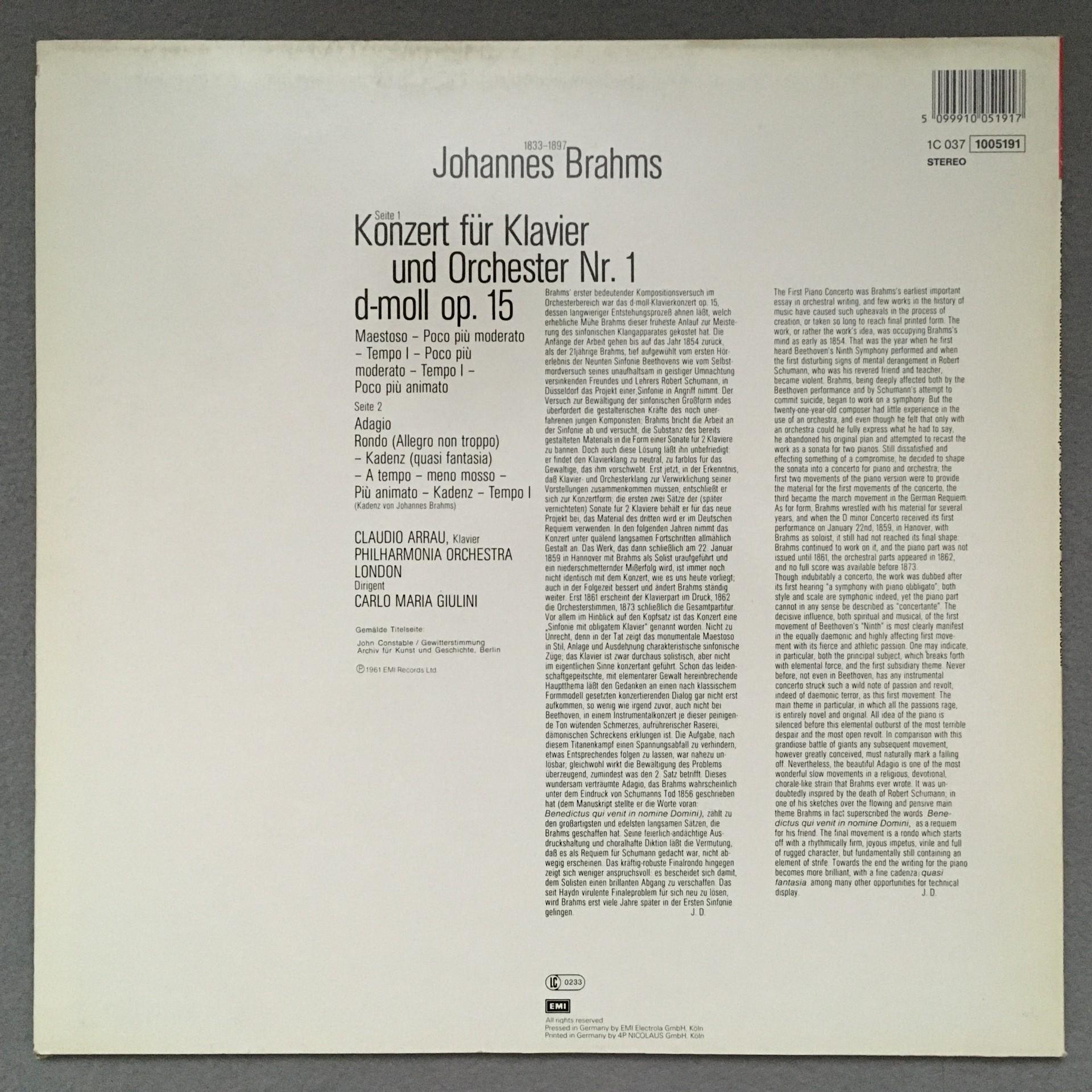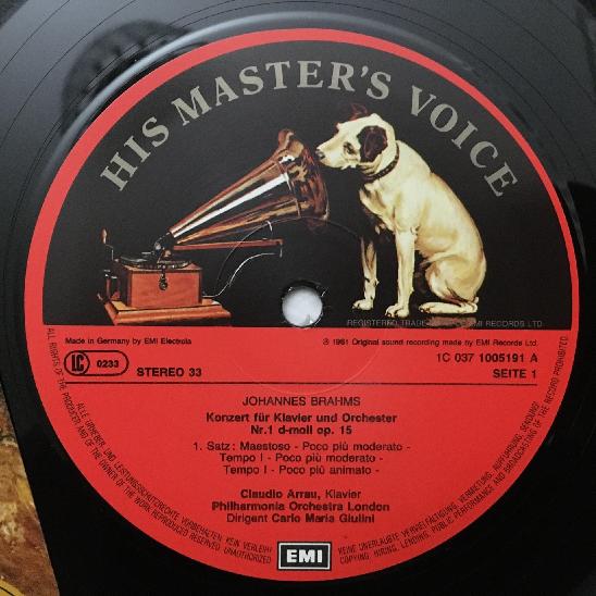 O335 Brahms Piano Concerto No.1 Arrau Giulini LPO EMI 1C 037 1005191 Stereo