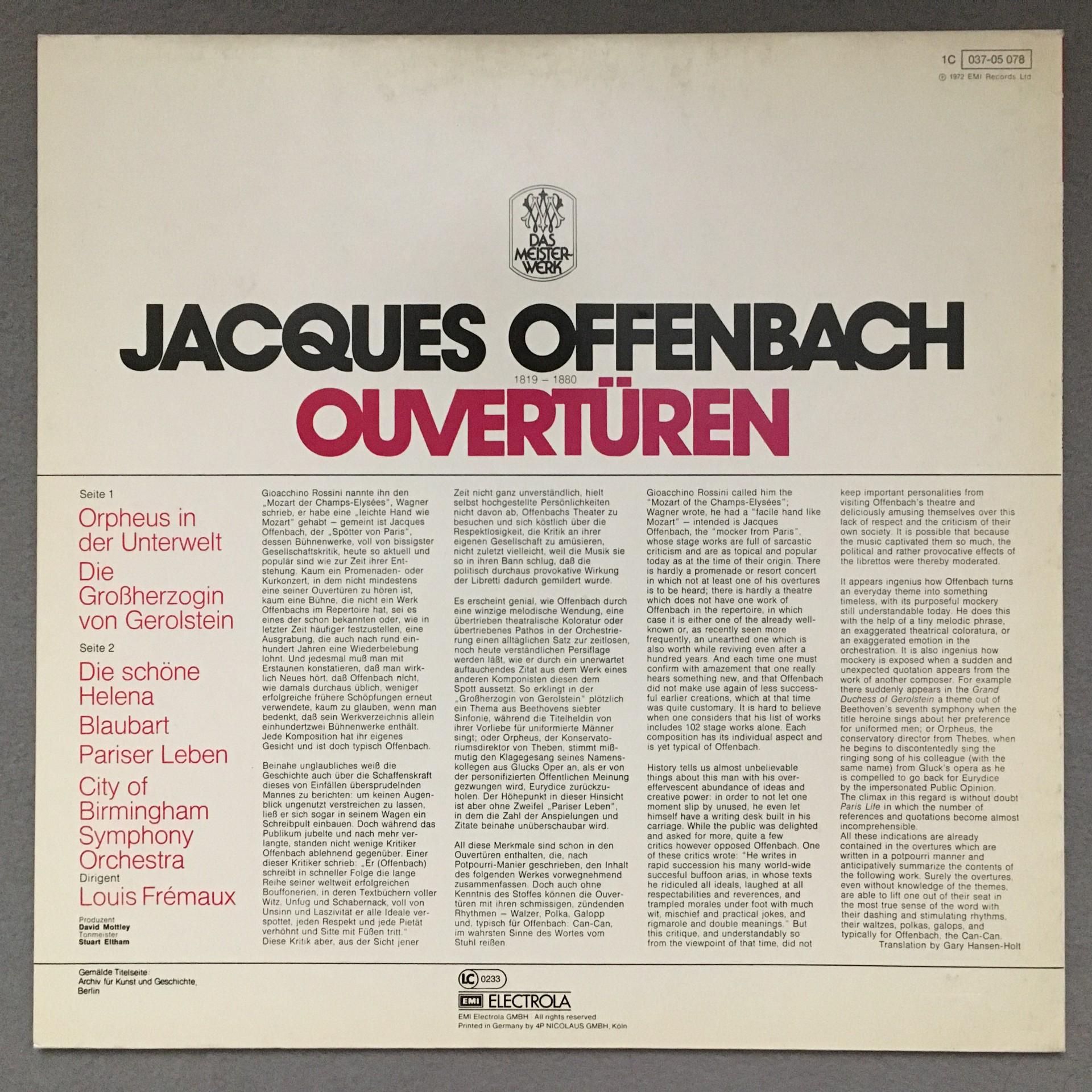 O338 Offenbach Overtures Fremaux EMI 1C 037-05 078 Stereo