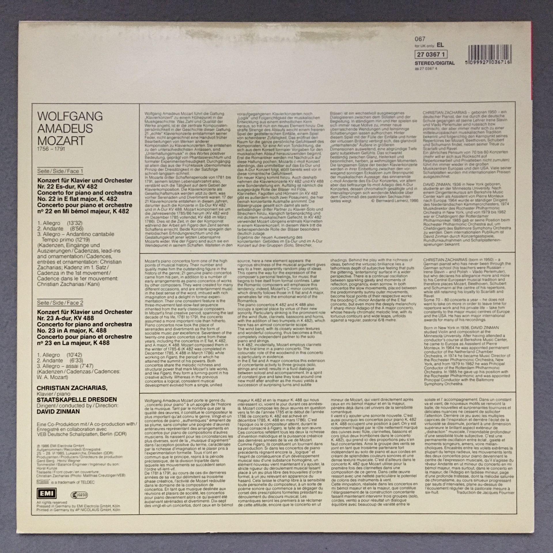 O341 Mozart Piano Sonatas Zacharias Zinman EMI 067 27 0367 1 Digital Stereo