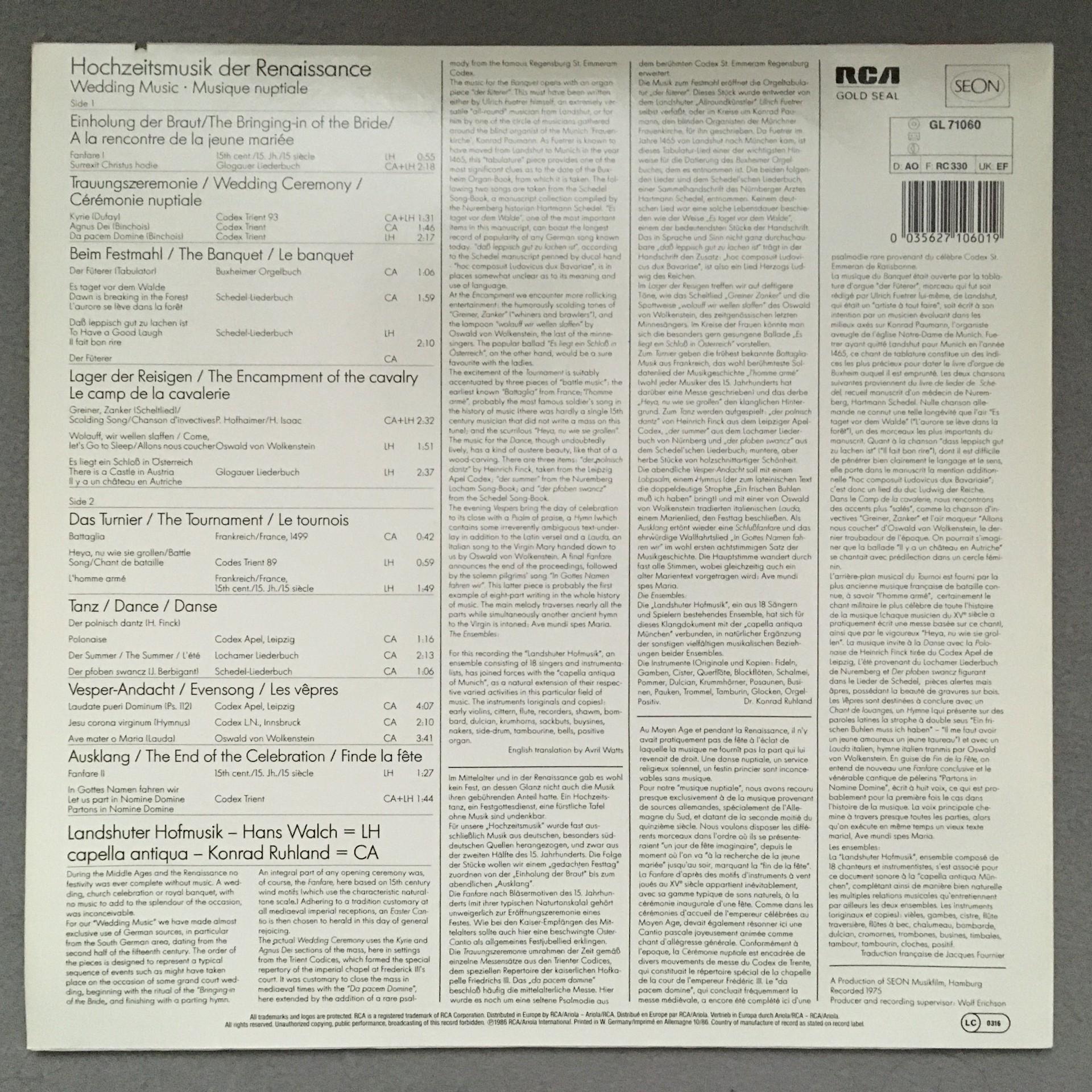 O355 Wedding Music Walch Ruhland RCA Gold Seal GL 71060 Digital Stereo