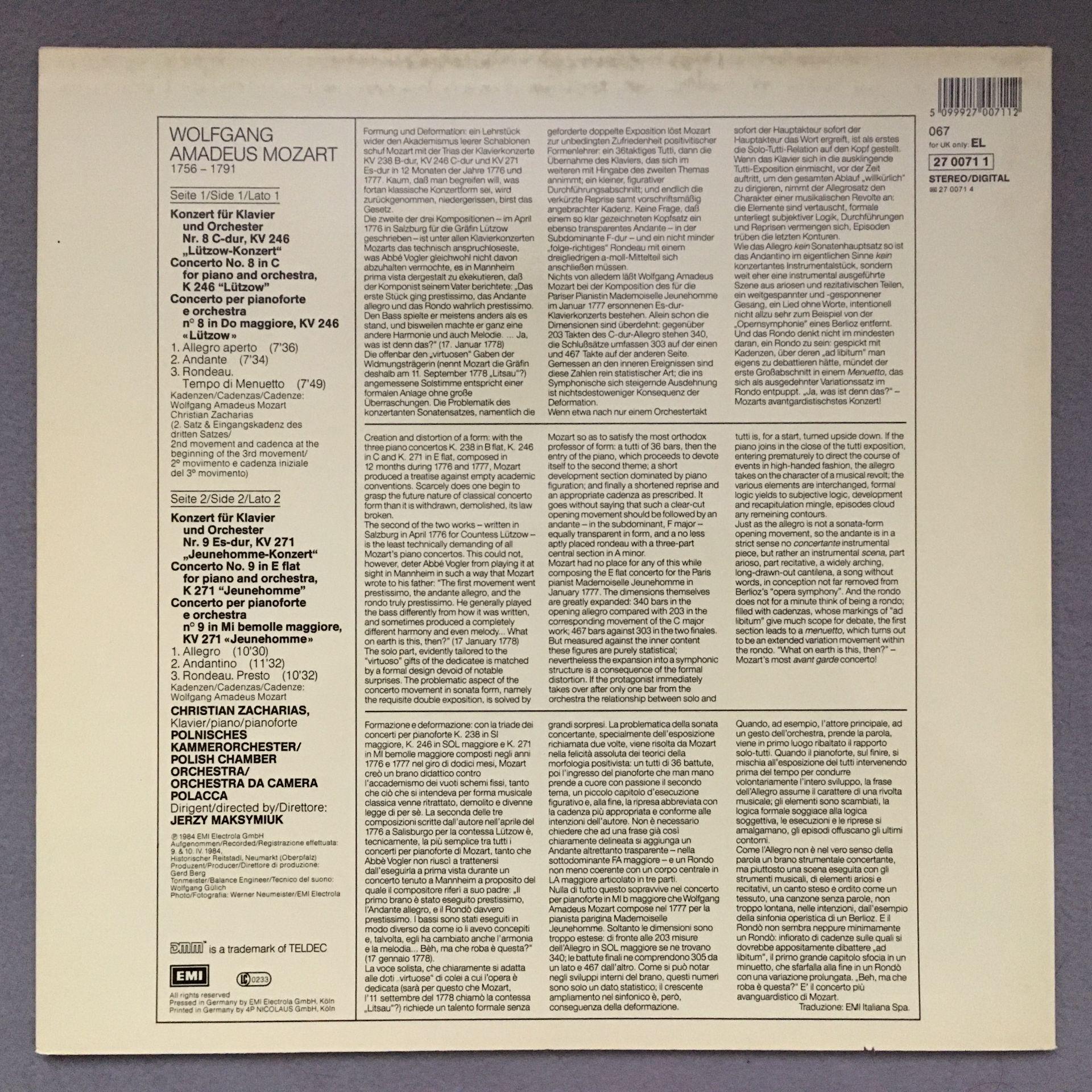 O359 Mozart Piano Concertos Zacharias Maksymiuk EMI 27 0071 1 Digital Stereo