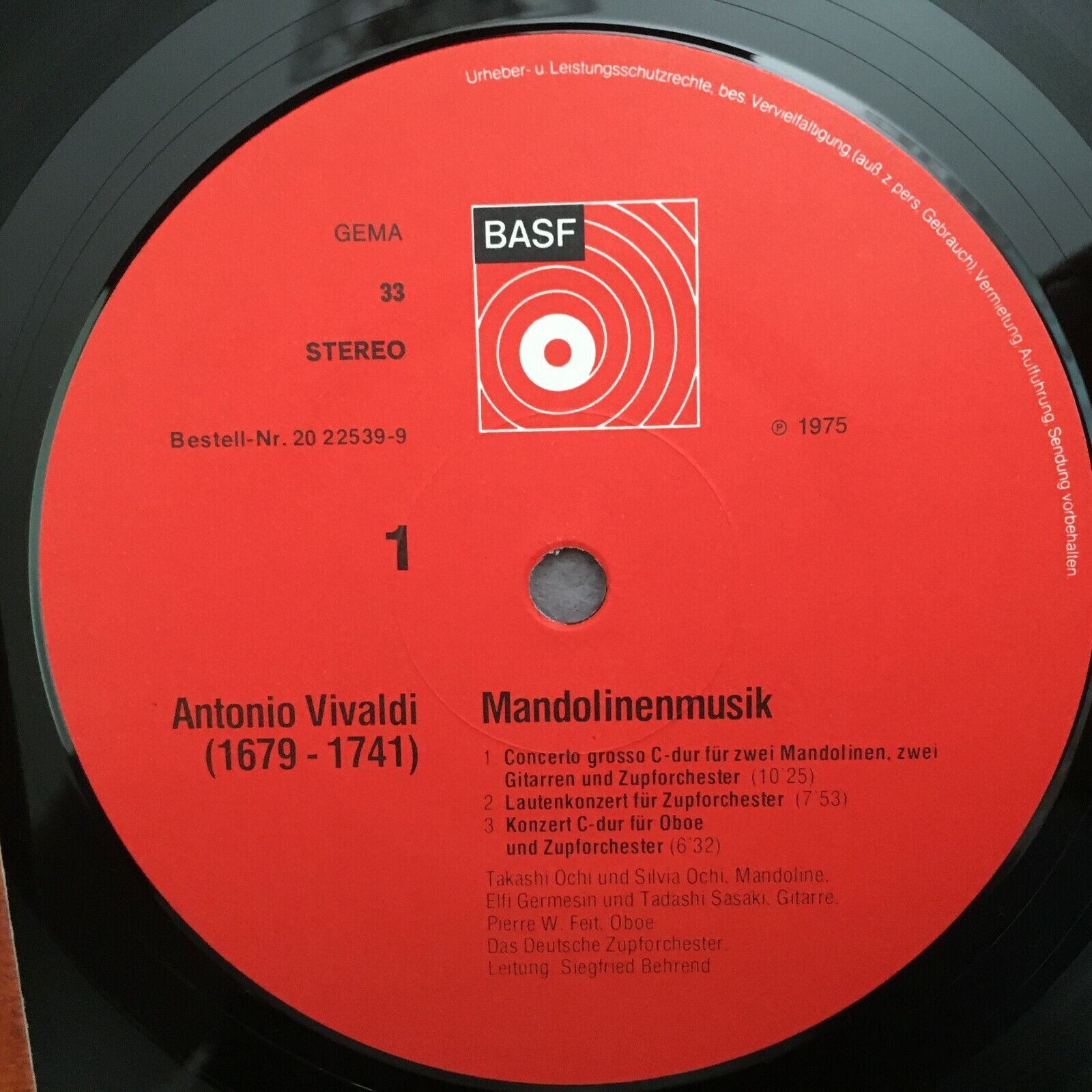 S589 Vivaldi Mandolinen Music Concertos Behrend BASF 20 22539-9 Stereo
