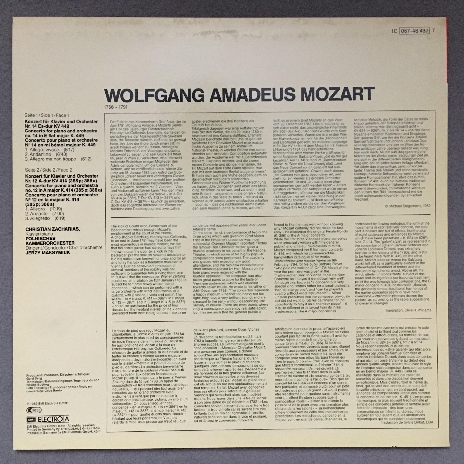 O360 Mozart Piano Concertos Zacharias Maksymiuk EMI 1C 067-46 437 T Digital Ster