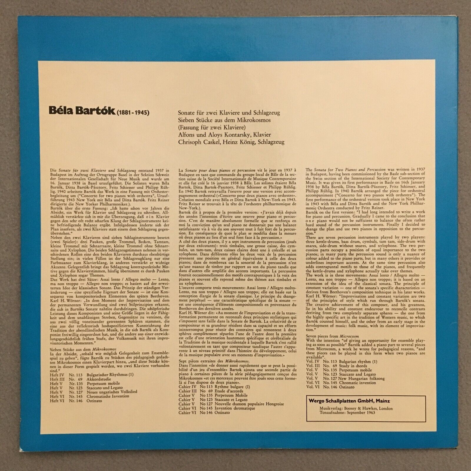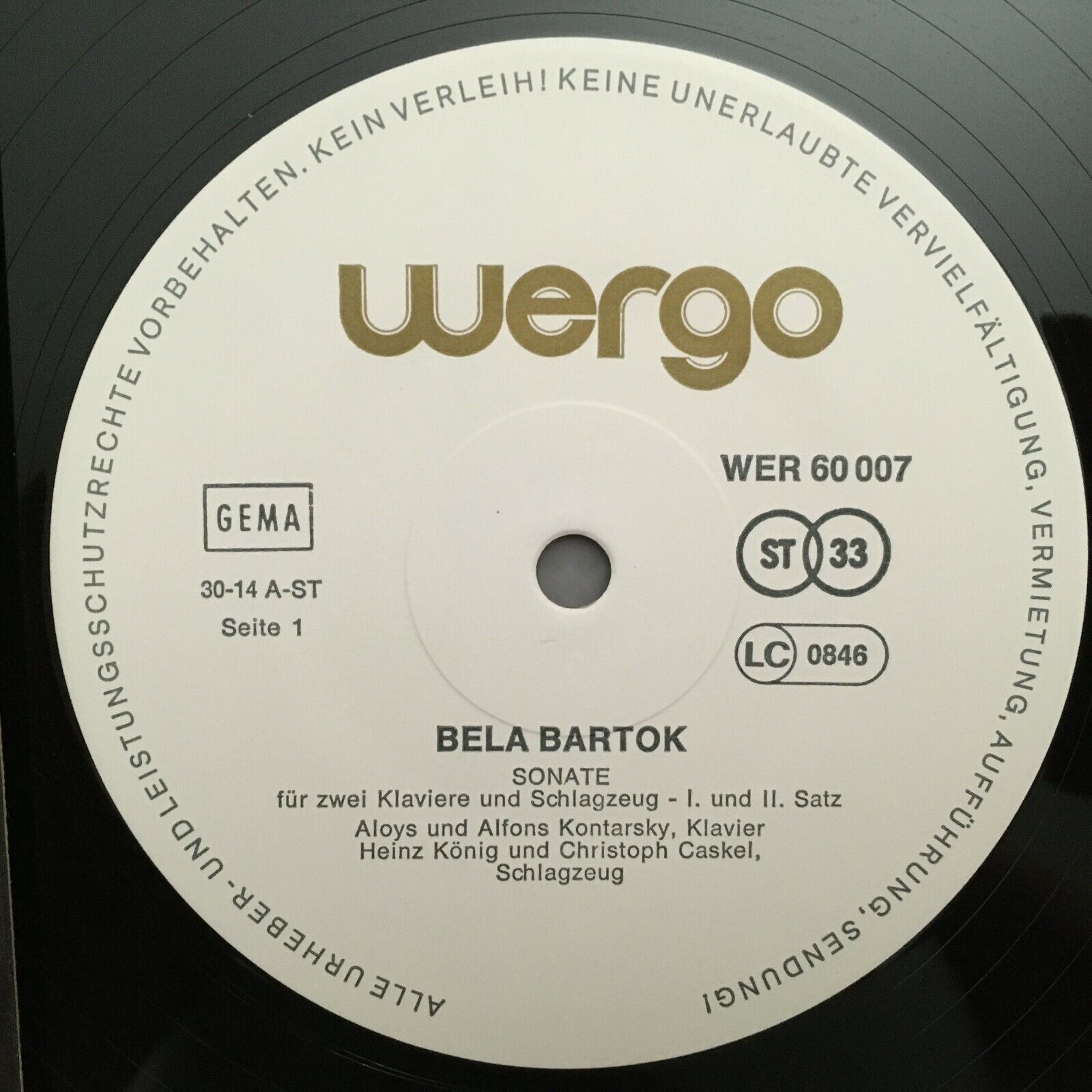 S595 Bartok Piano Sonata Mikrokosmos A. & A. Kontarsky Wergo WER 60 007 Stereo