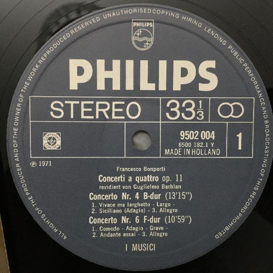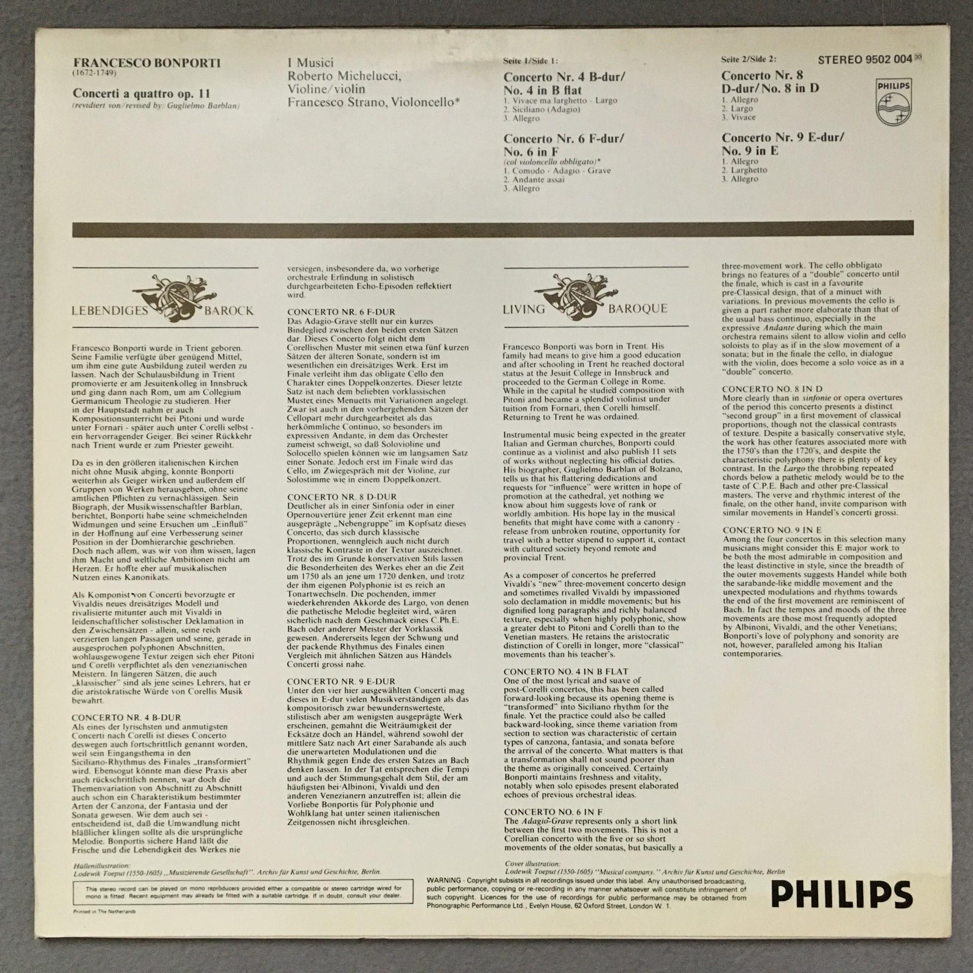 O371 Bonporti 4 Concertos Michelucci Strano I Musici Philips 9502 004 Stereo