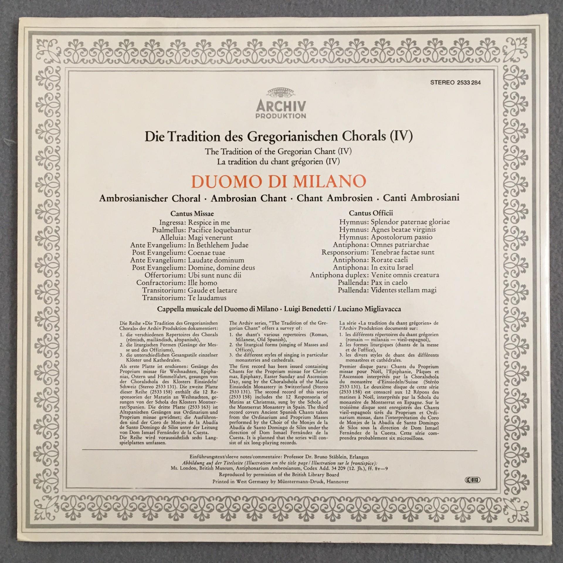 O394 Ambrosian Chant Benedetti Dupmo di Milano DGG Archiv 2533 284 Stereo