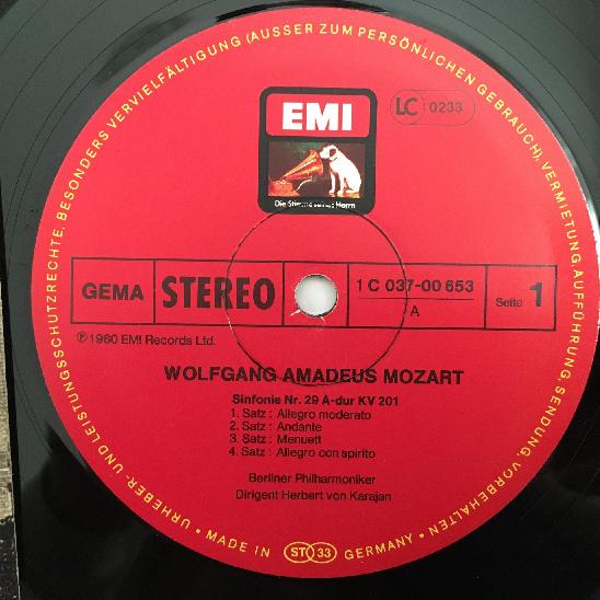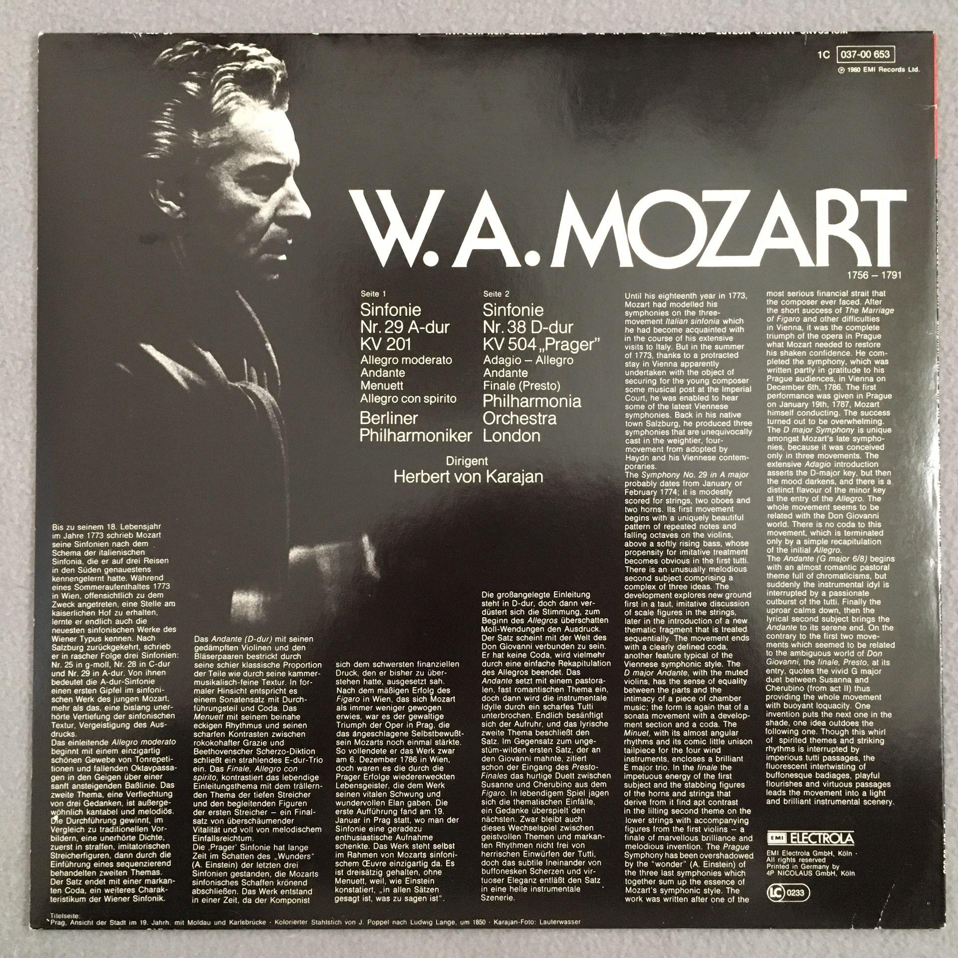 O404 Mozart Symphonies No.29 & No.38 Karajan BPO EMI 1C 037-00 653 Stereo