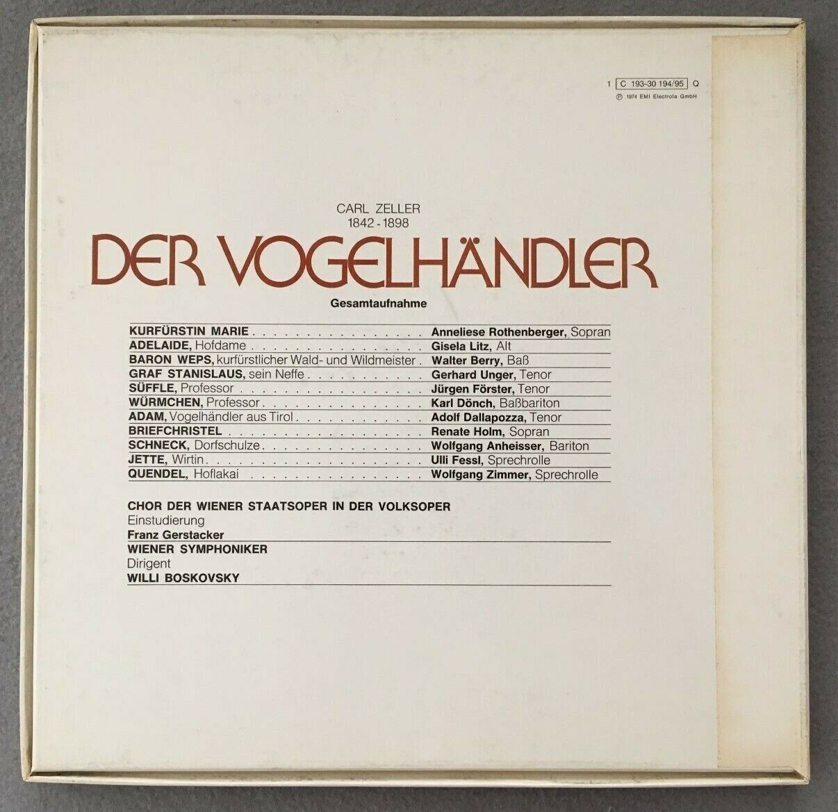 G210 Zeller Der Vogelhändler Holm Berry Boskovsky VSO 2LP EMI 1C 193-30 194/95 Q