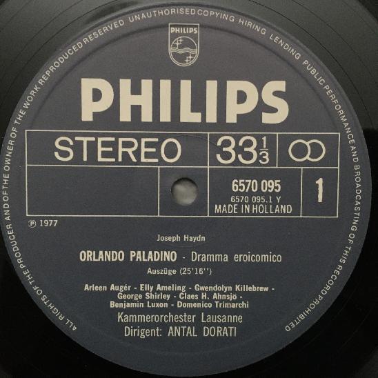 O417 Haydn Orlando Paladino Auger Dorati Philips 6570 095 Stereo
