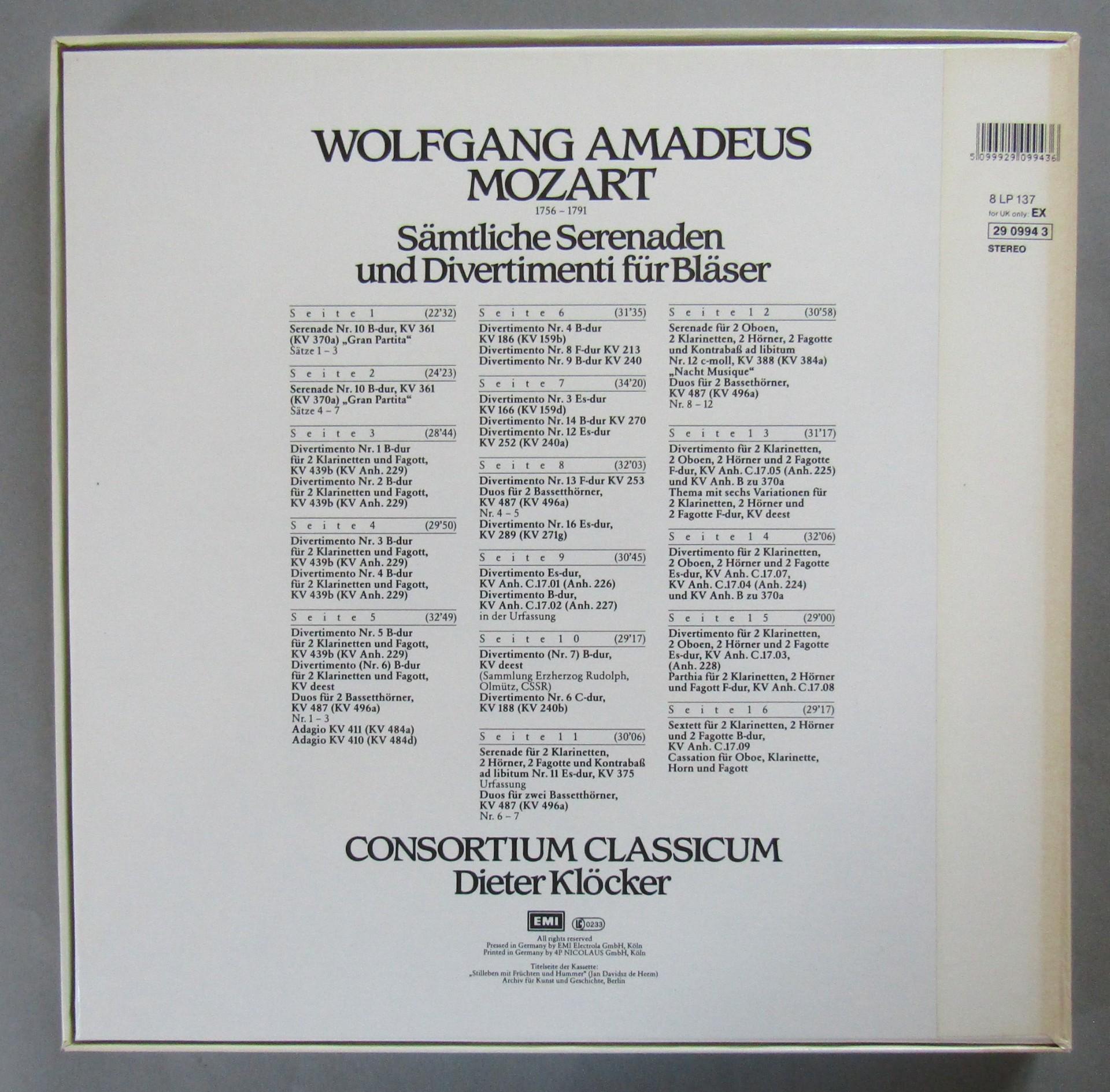 G568 Mozart Complete Serenades for Blaster Klöcker 8LP 137 29 0994 3 Digital St