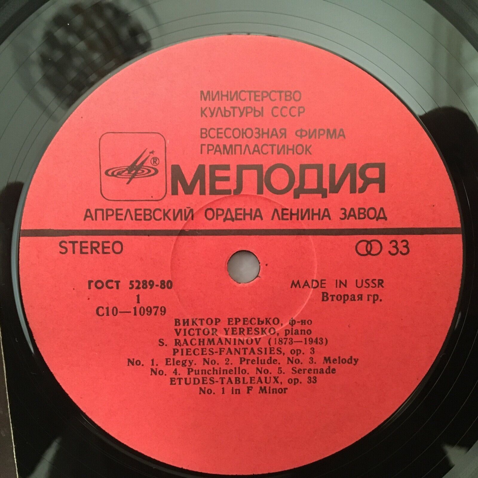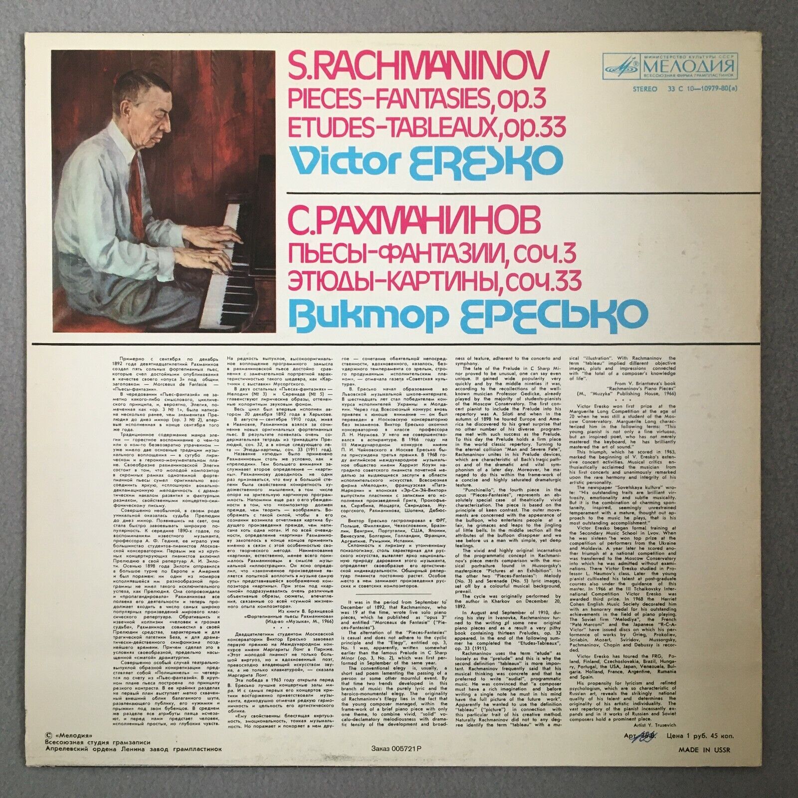 S230 Rachmaninov Pieces Fantasies Eresco Melodiya 33 C 10-10979 -80 Stereo