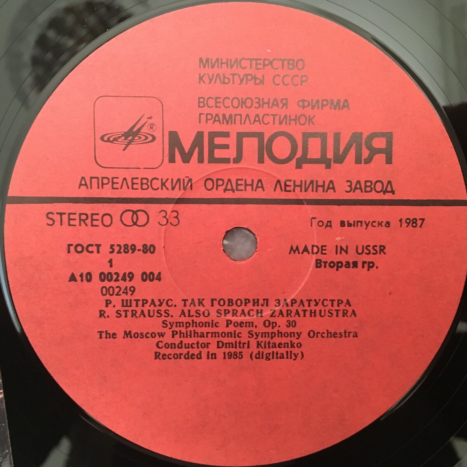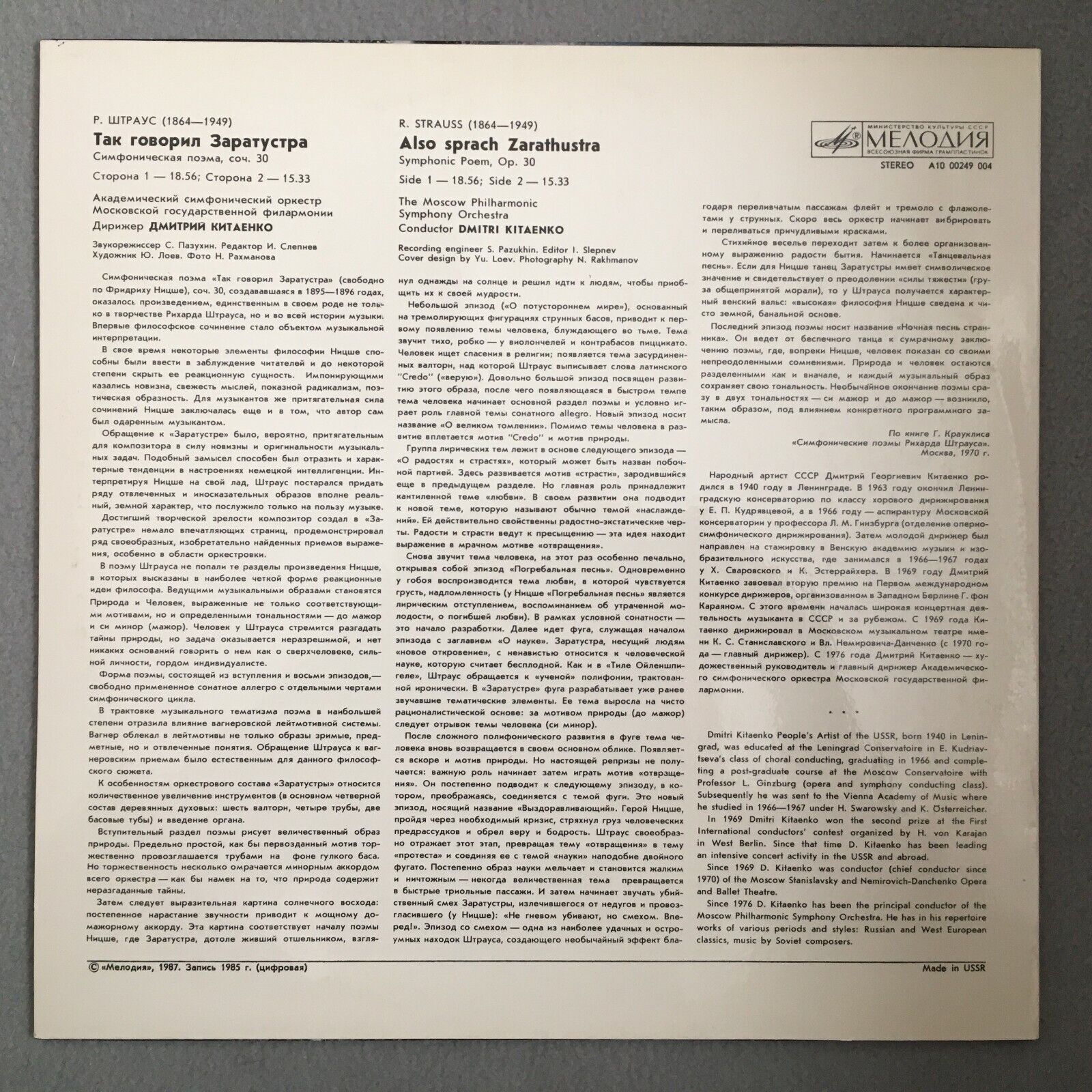 S232 R. Strauss Also speaks Zarathustra Kitaenko Melodiya A10 00249 004 Stereo