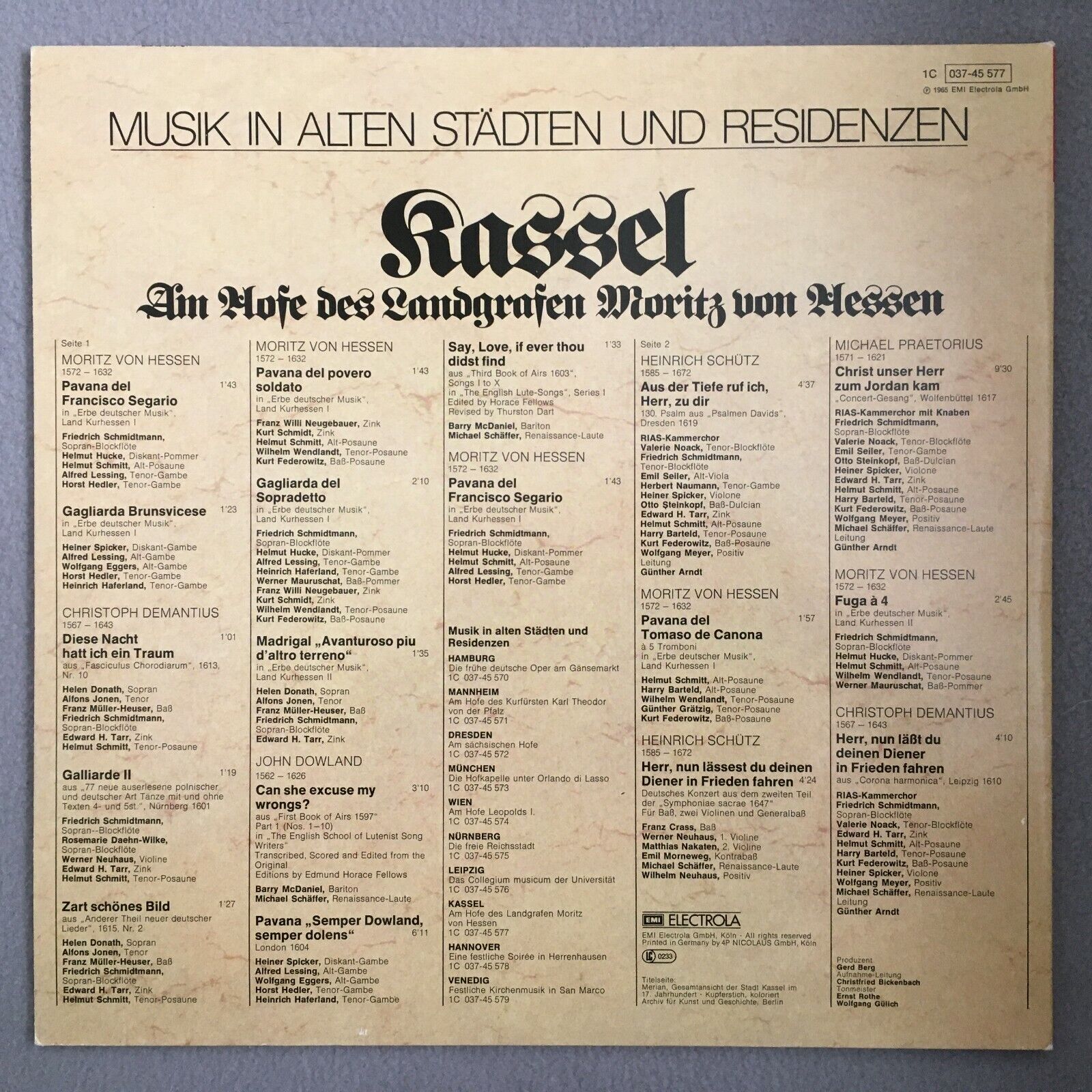 S234 Music from Kassel Moritz von Hessen Schütz EMI 1C 037-45 577 Stereo