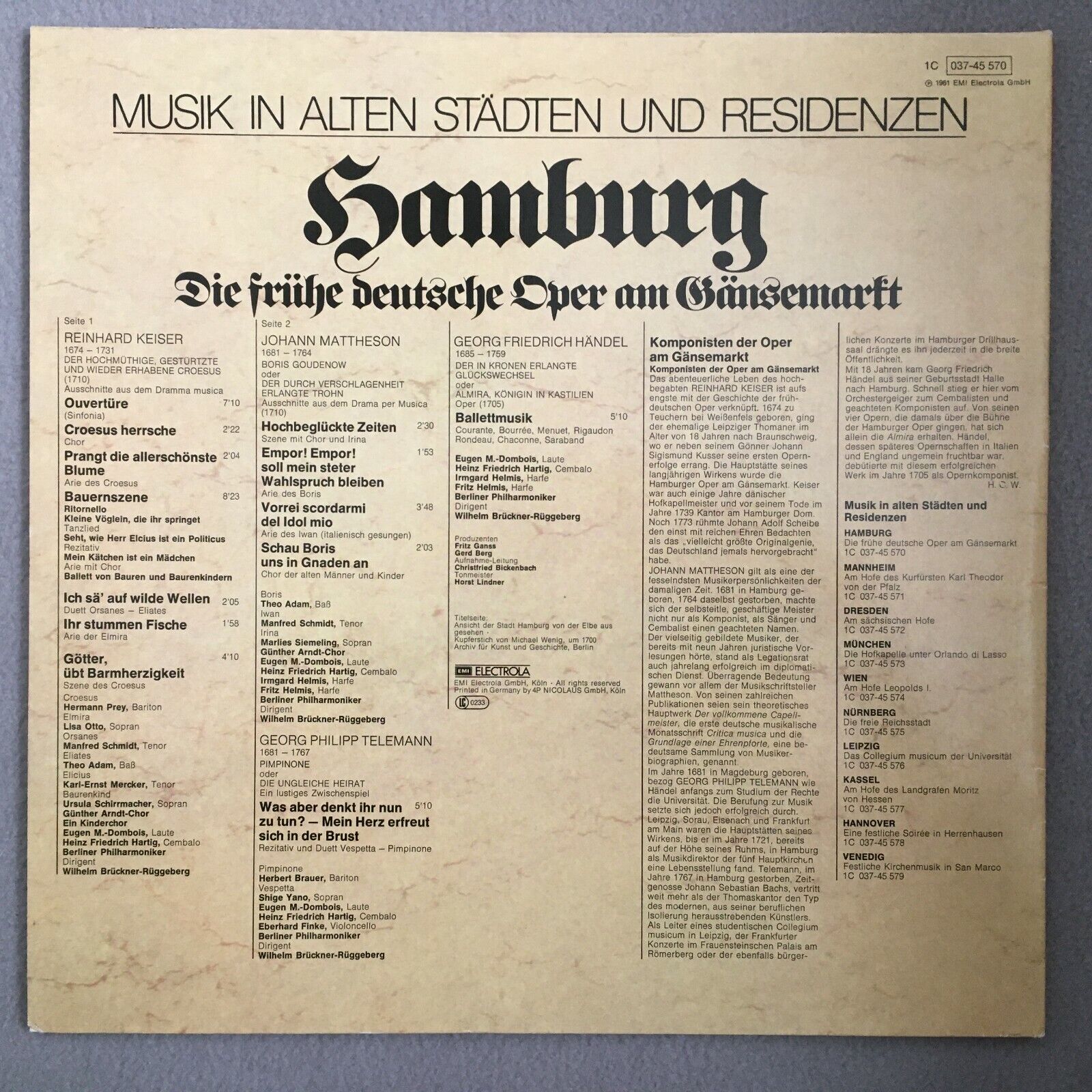 S235 Music from Hamburg Keiser Telemann Handel EMI 1C 037-45 570 Stereo