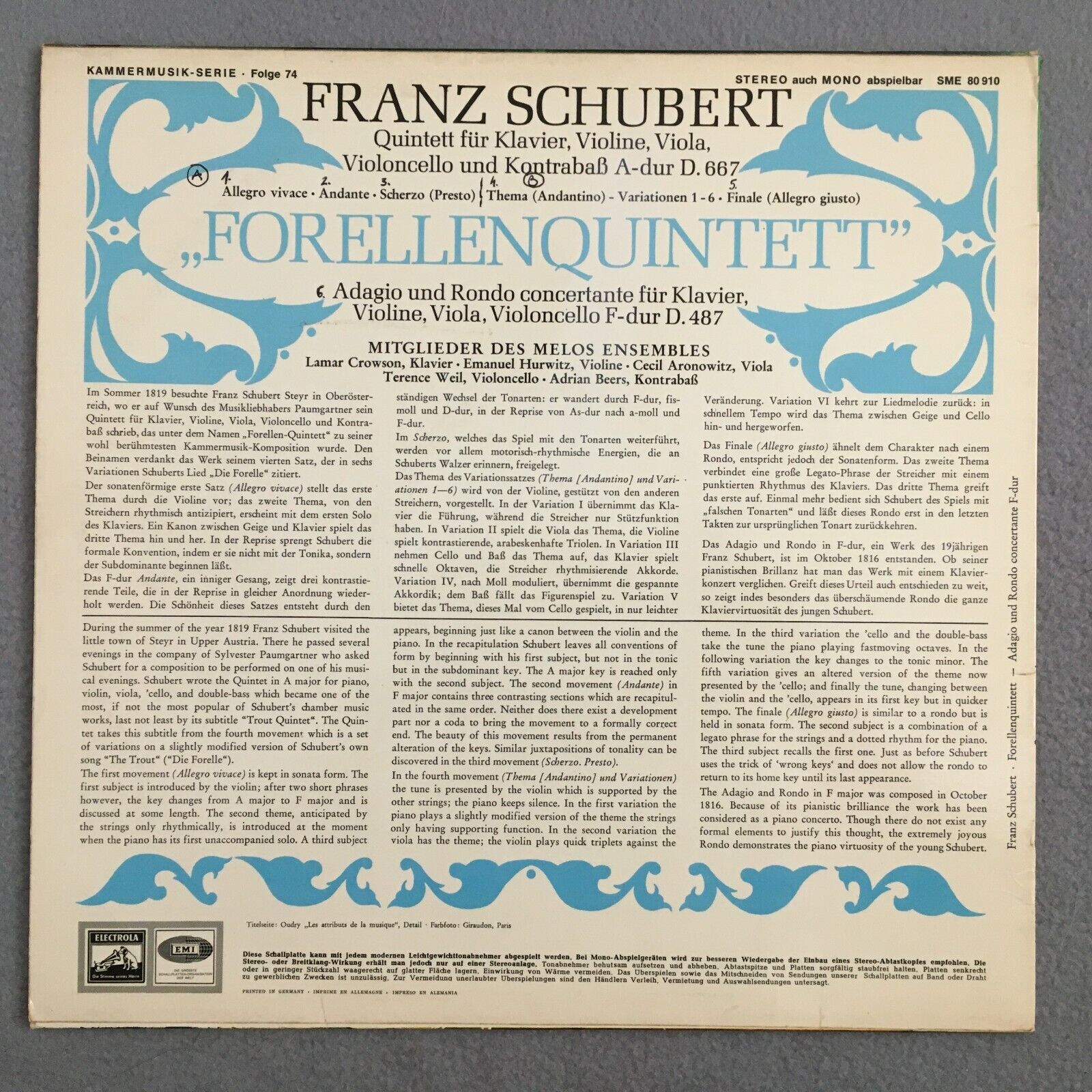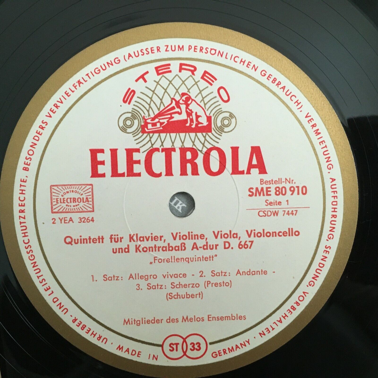 V329 Schubert Trout Quintet Melos Ensemble Electrola w/g SME 80 910 Stereo