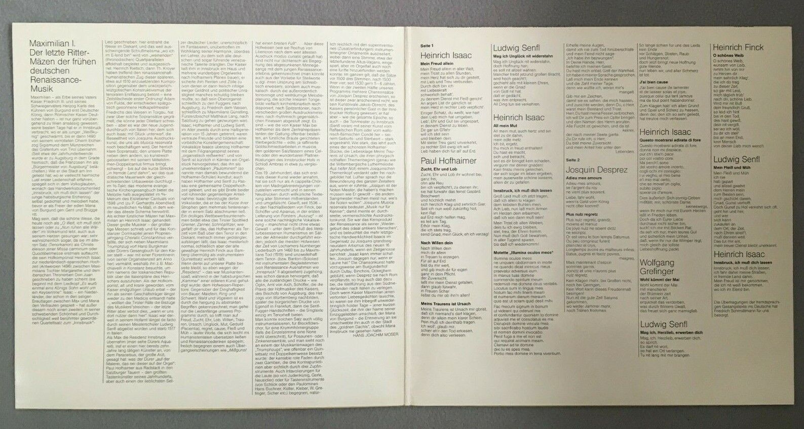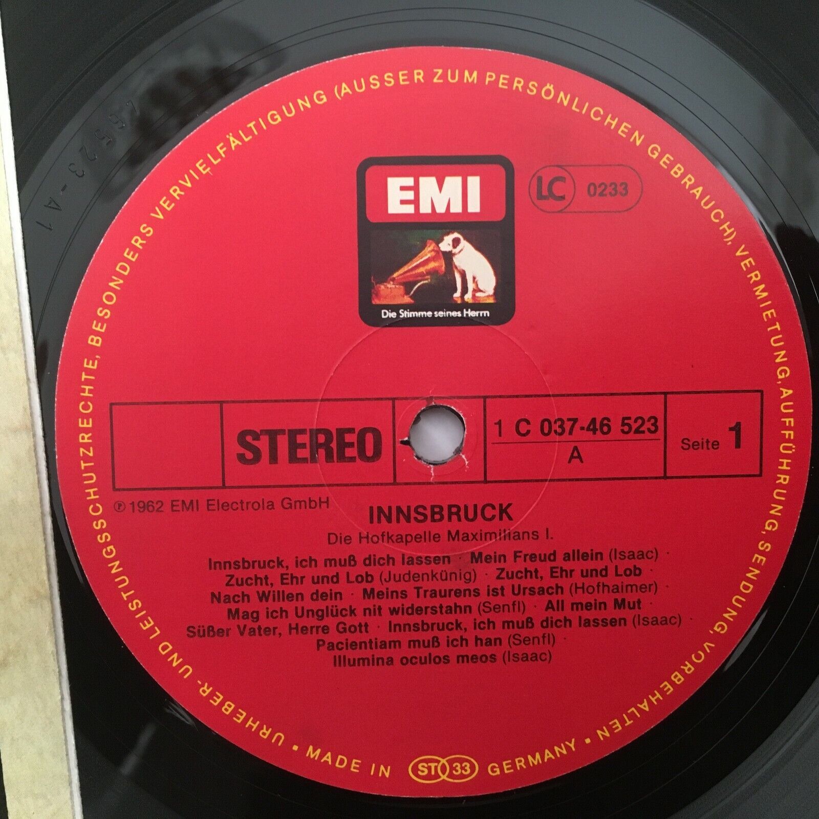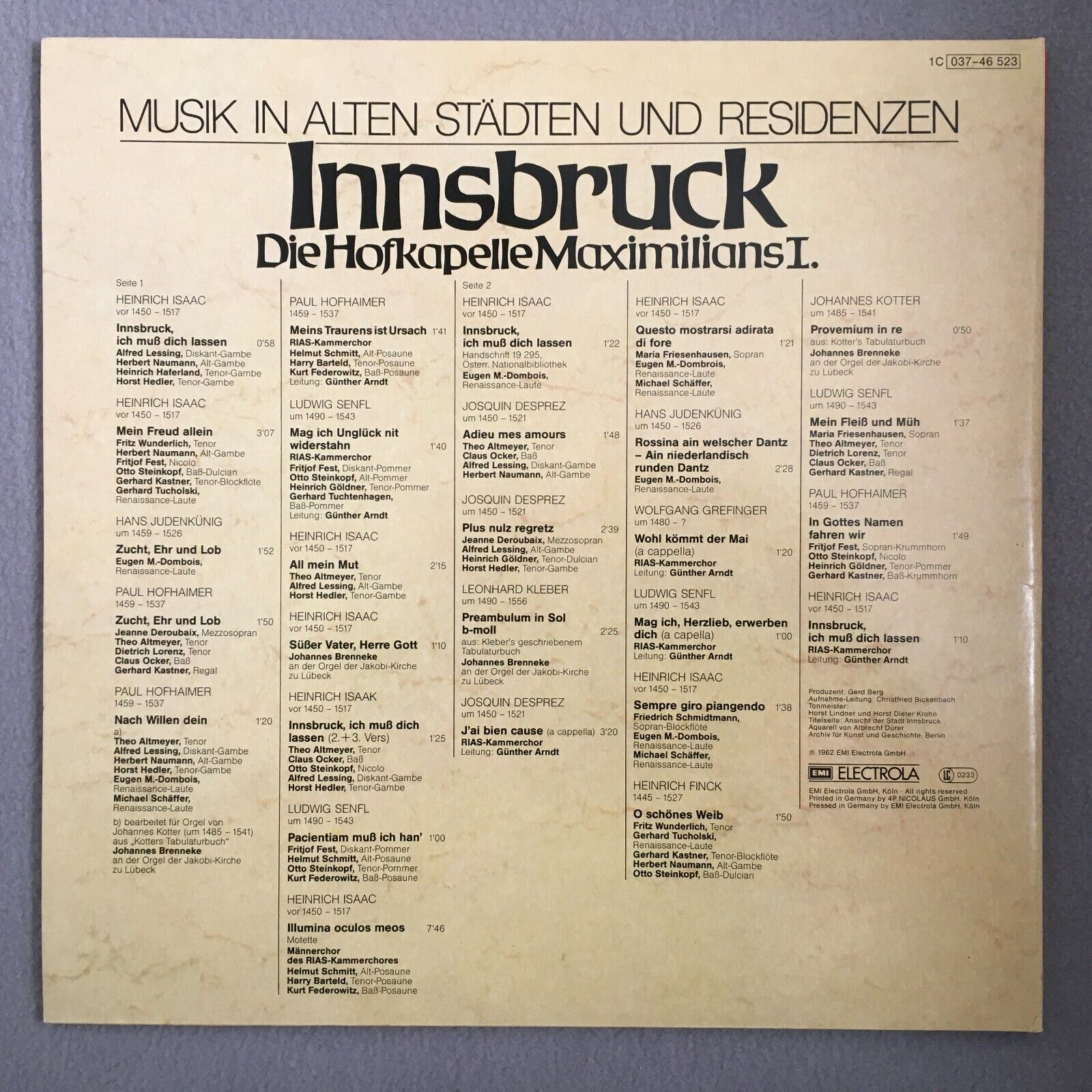 S237 Music from Innsbruck Maximilian I Isaac Kleber EMI 1C 037-46 523 Stereo