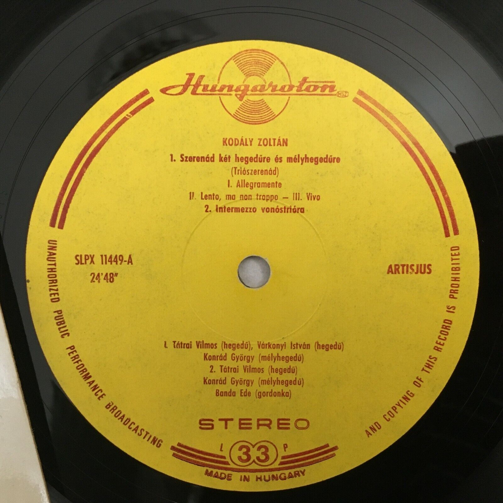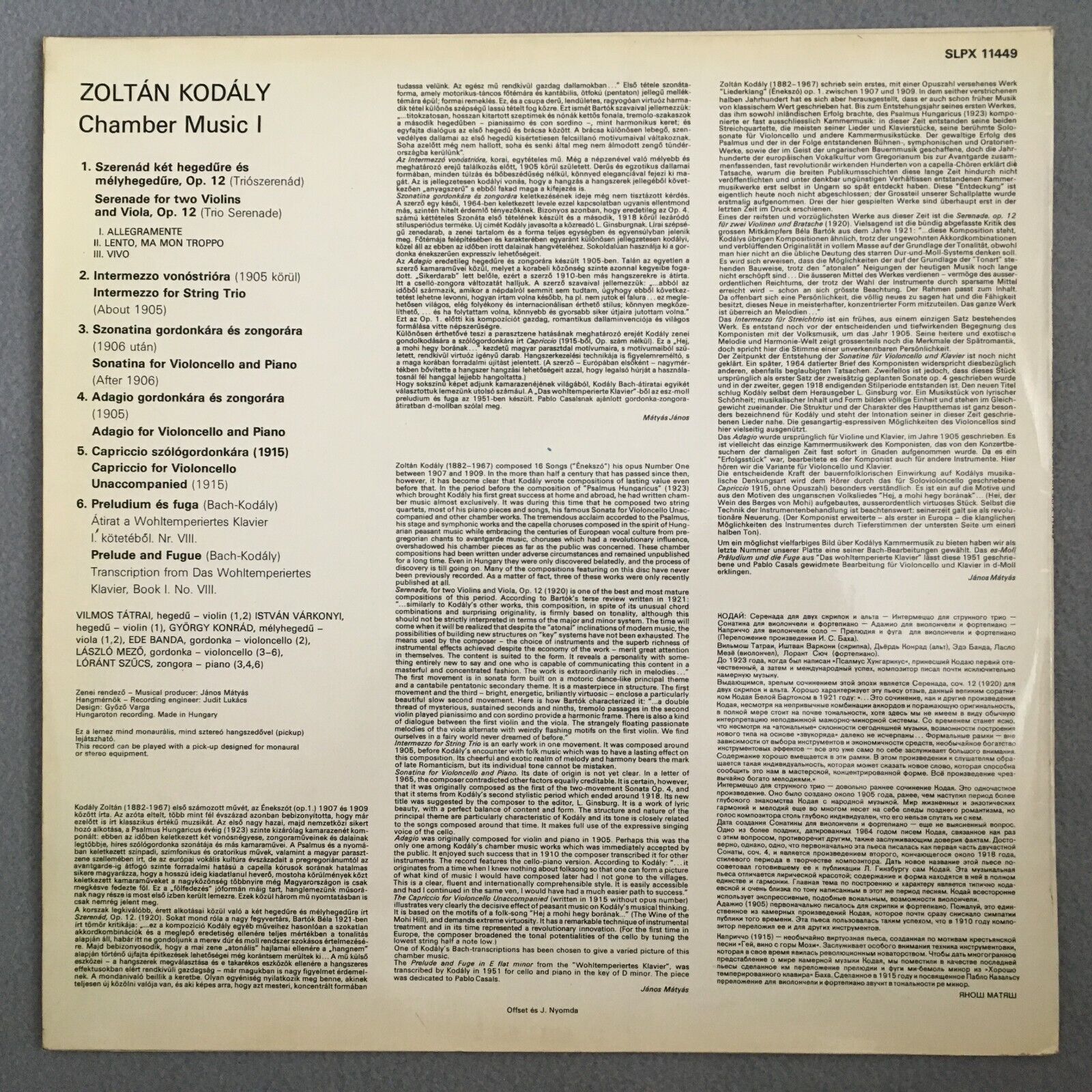 S546 Kodaly Chamber Music Vol.1 Tatrai Varkonyi Hungaroton SLPX 11449 Stereo