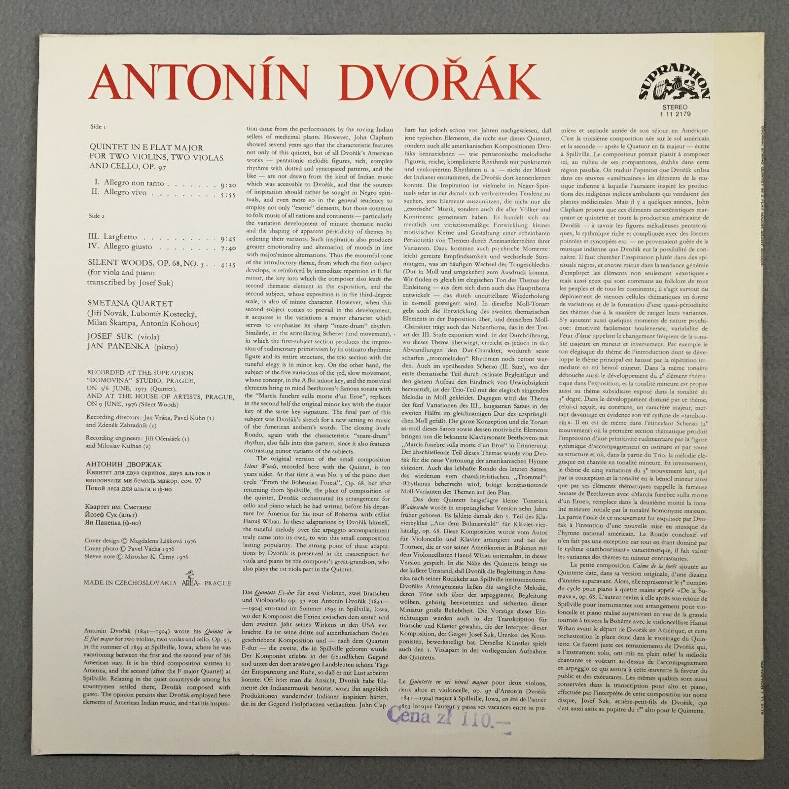 S547 Dvorak String Quintet Suk Woods Panenka Smetana Supraphon 1 11 2179 Stereo