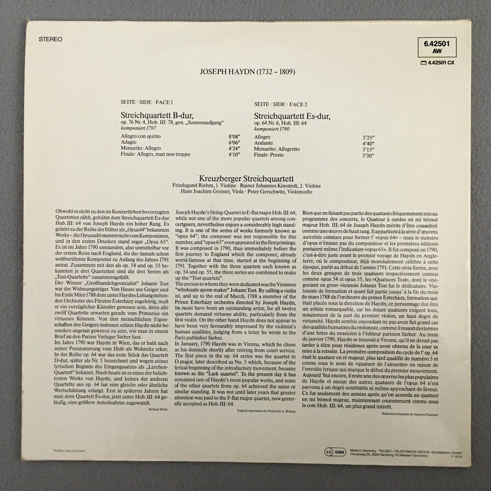 S549 Haydn String Quartets Kreuzberger String Quartet Telefunken 6.42501 AW St