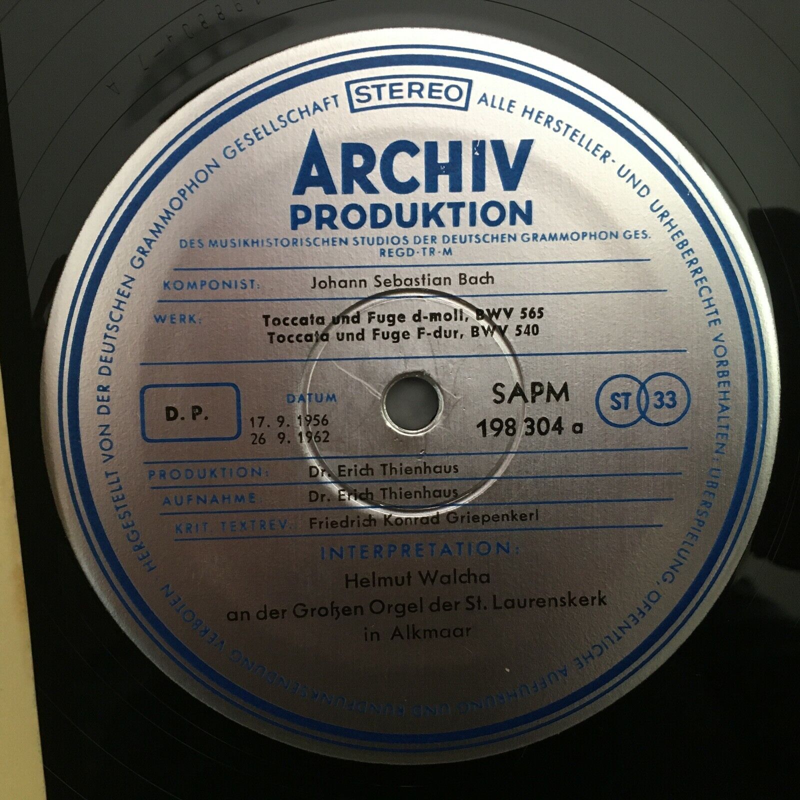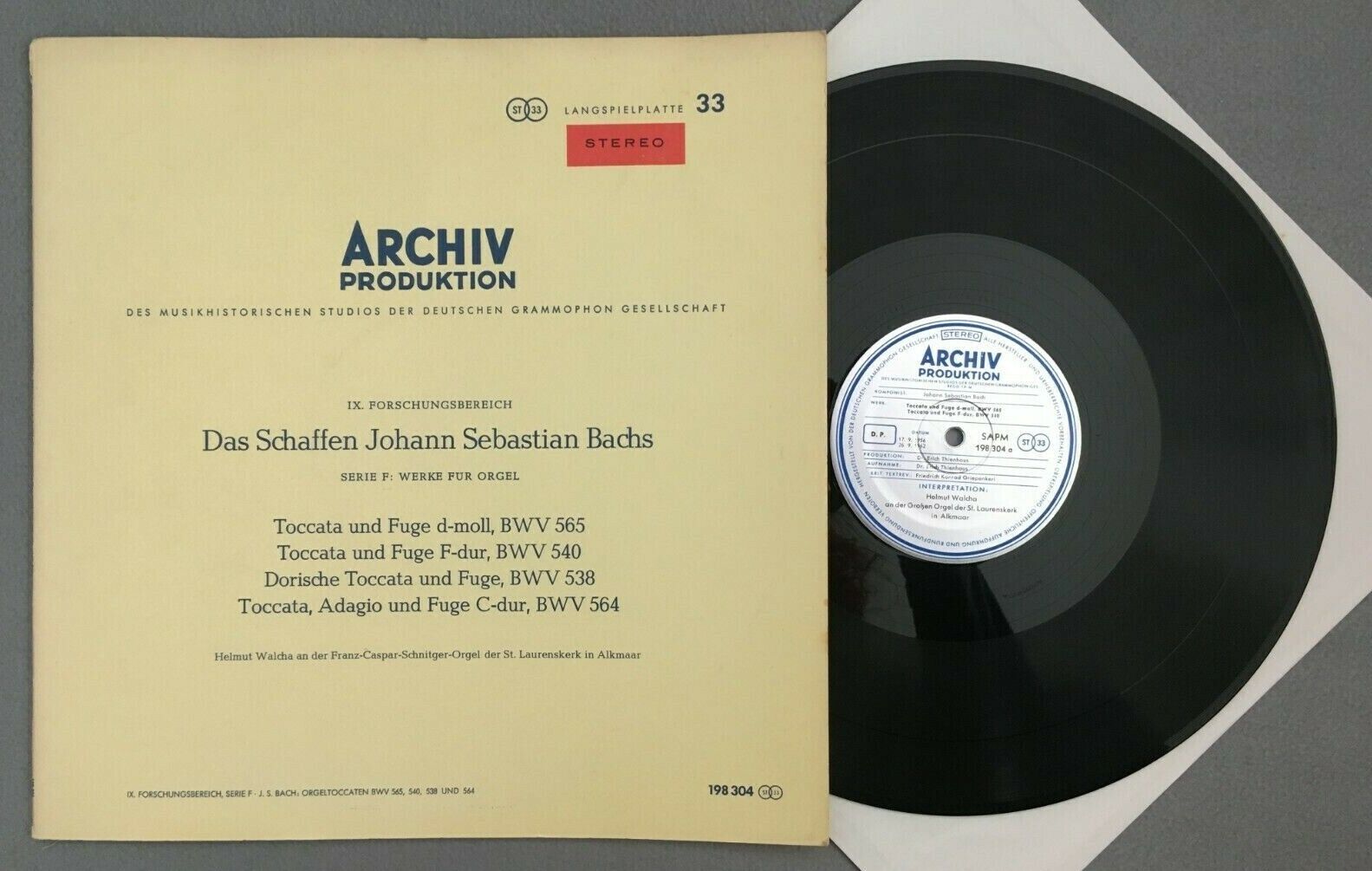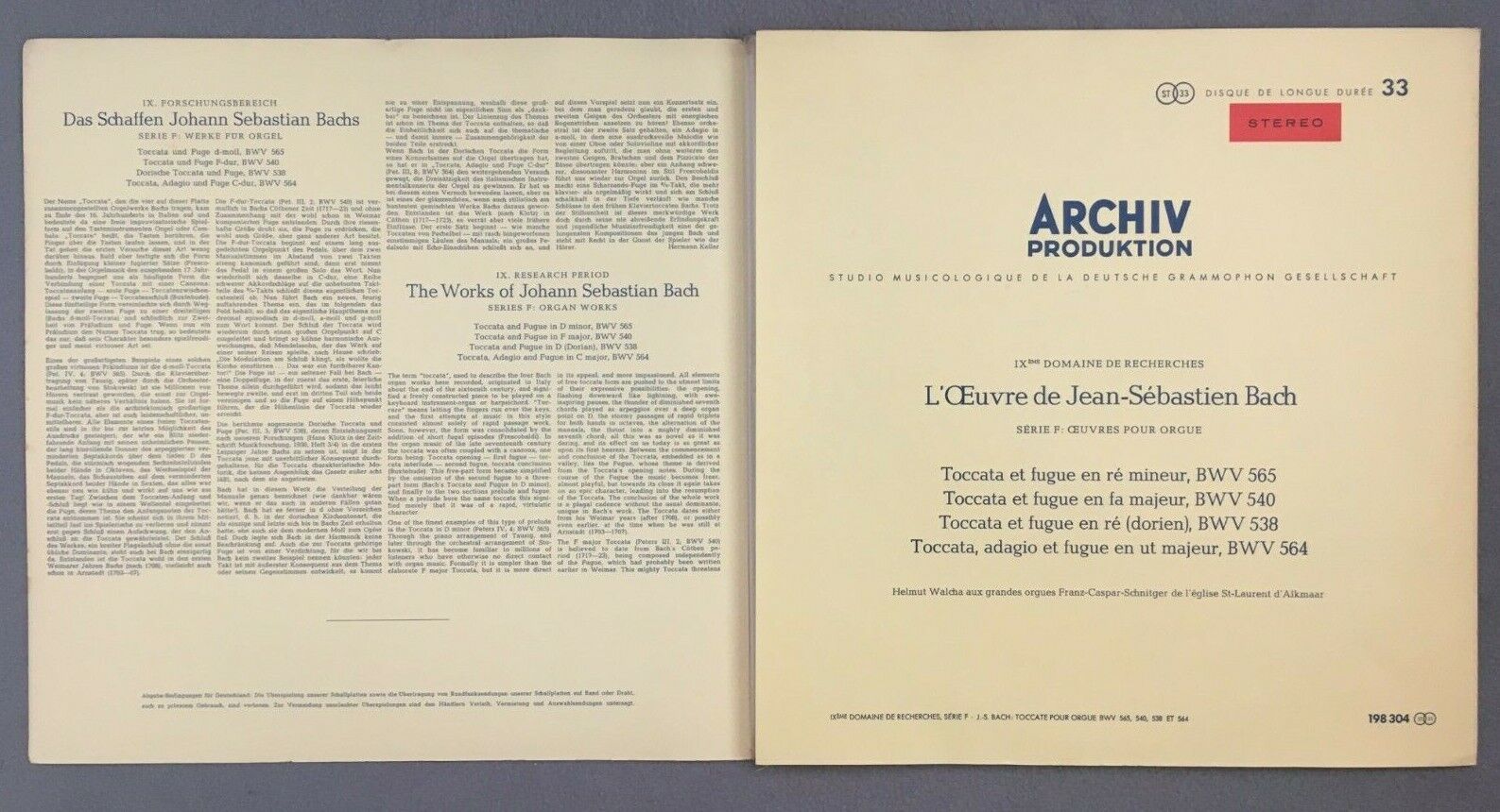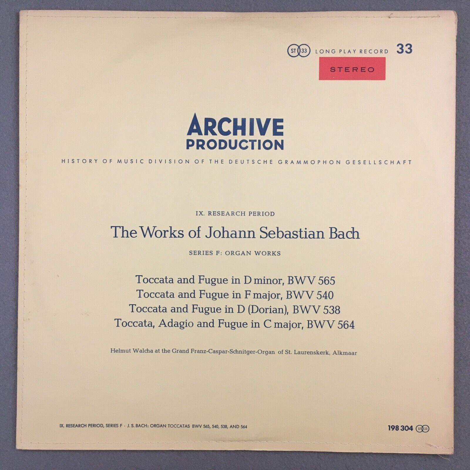 S556 Bach Organ Works Toccata & Fugue Walcha DGG Archiv 198 304 Red Stereo