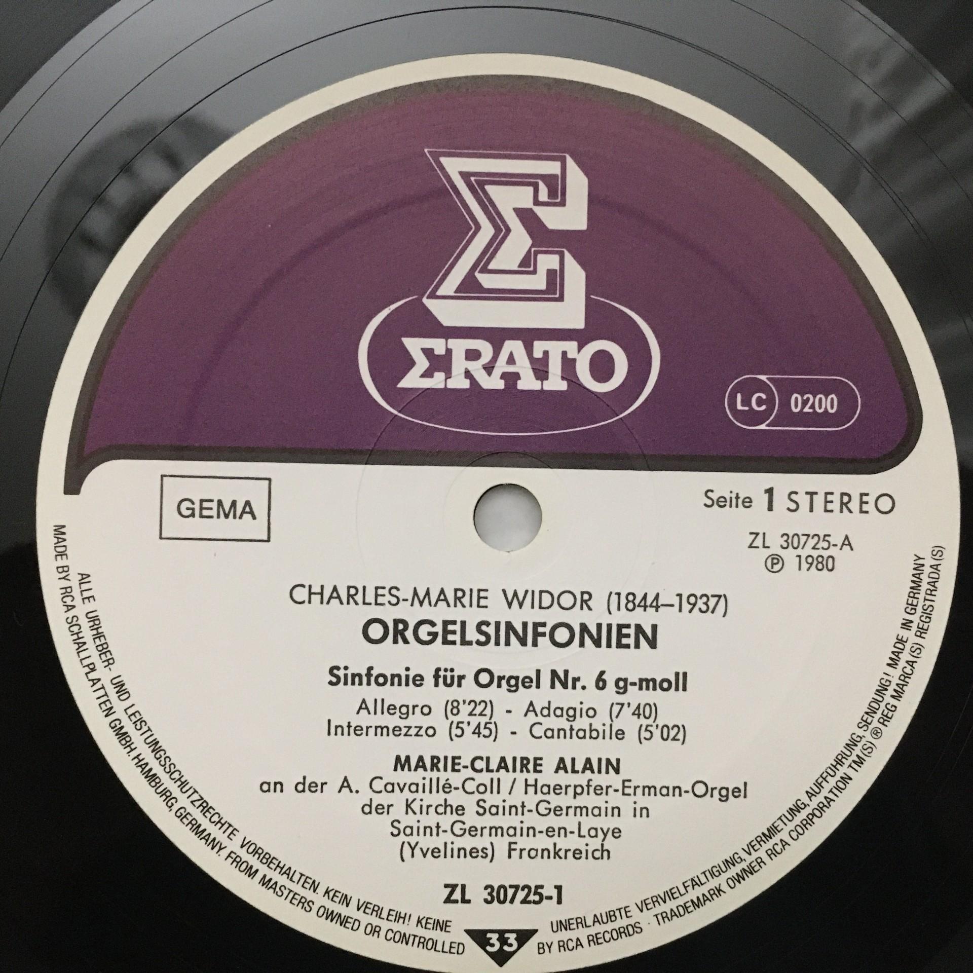 D733 Widor Organ Symphonies Alain Organ 2LP Erato ZL 30725 Stereo