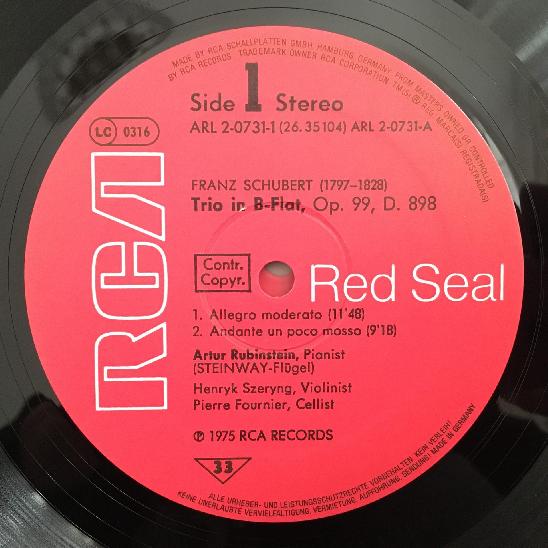 D735 Schubert The Piano Trios Rubinstein Szeryng Fournier 2LP RCA 26.35104 Ster