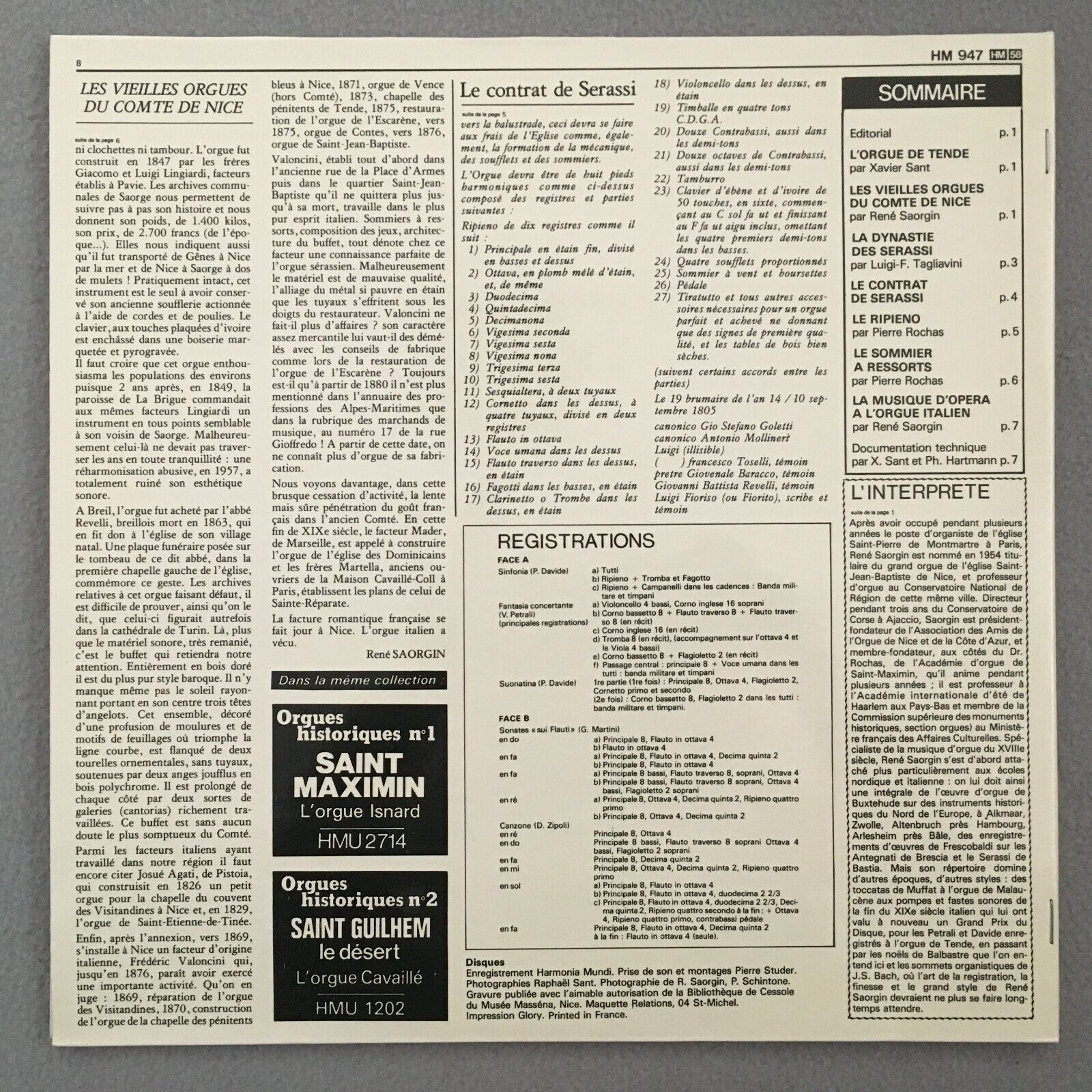 S089 Historical Organs Vol.3 Saorgin Harmonia Mundi France HM 947