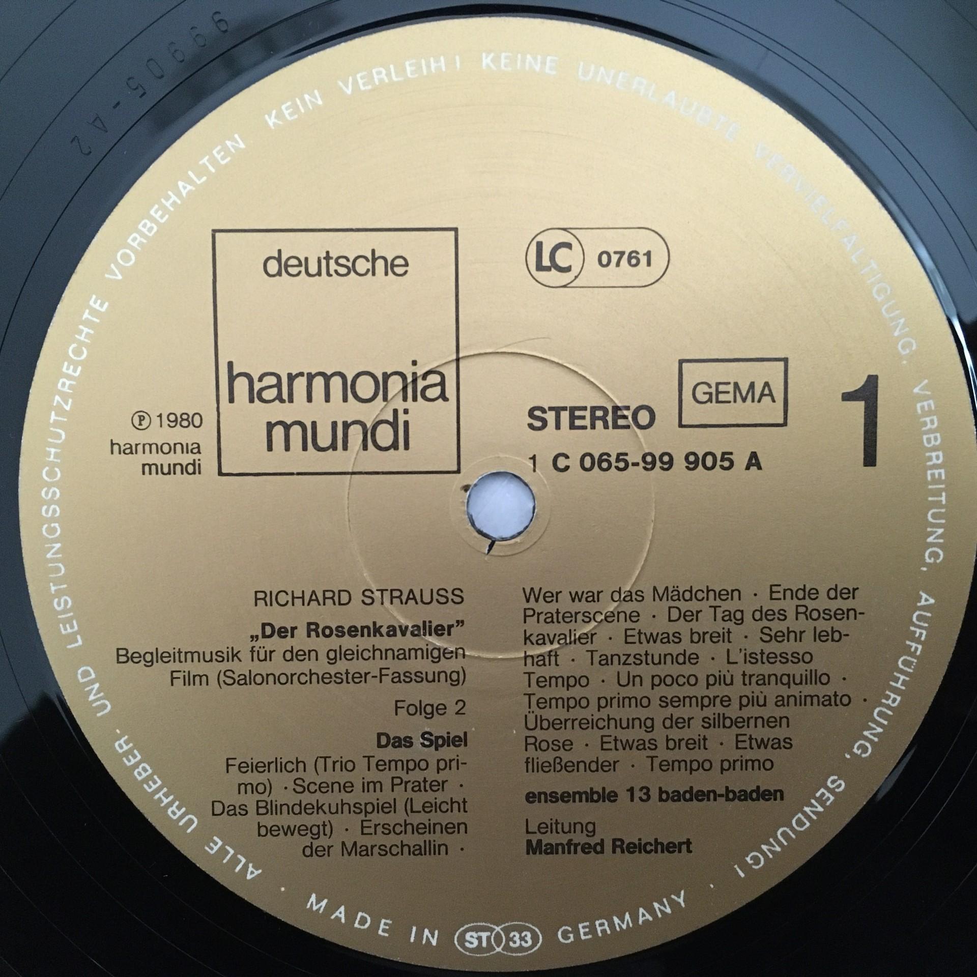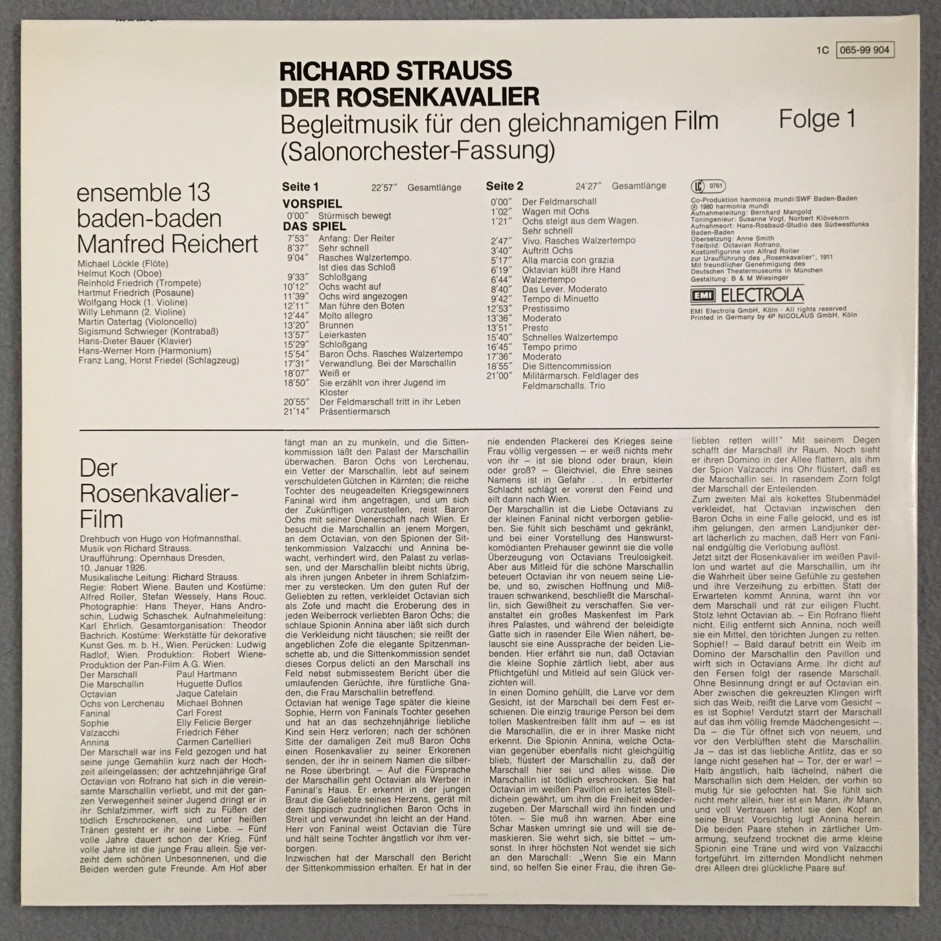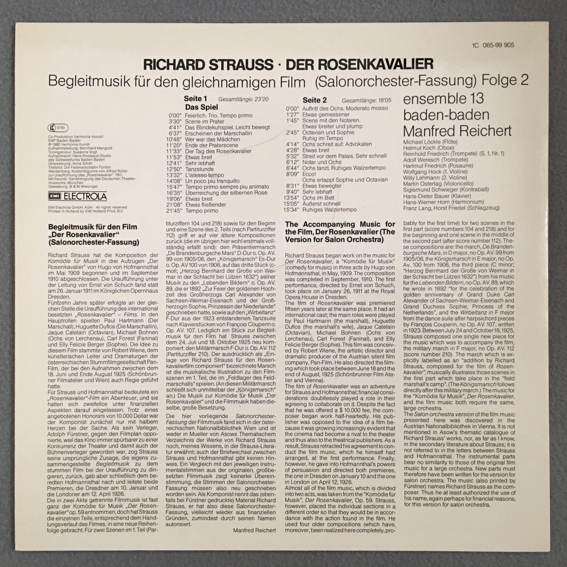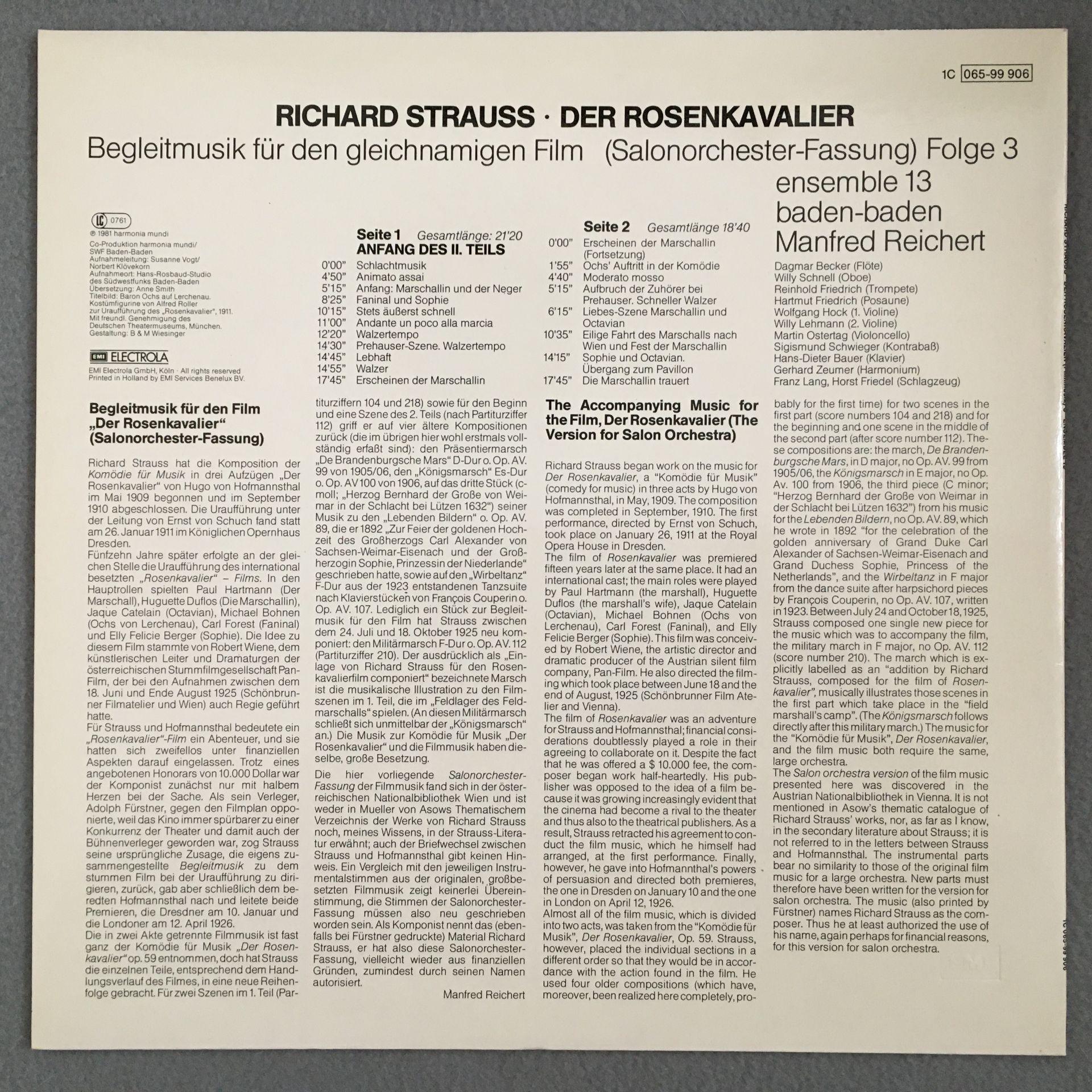 D738 R. Strauss Rosenkavalier Film Music Reichert 3LP HM 1C 065-99 904/05/06 St