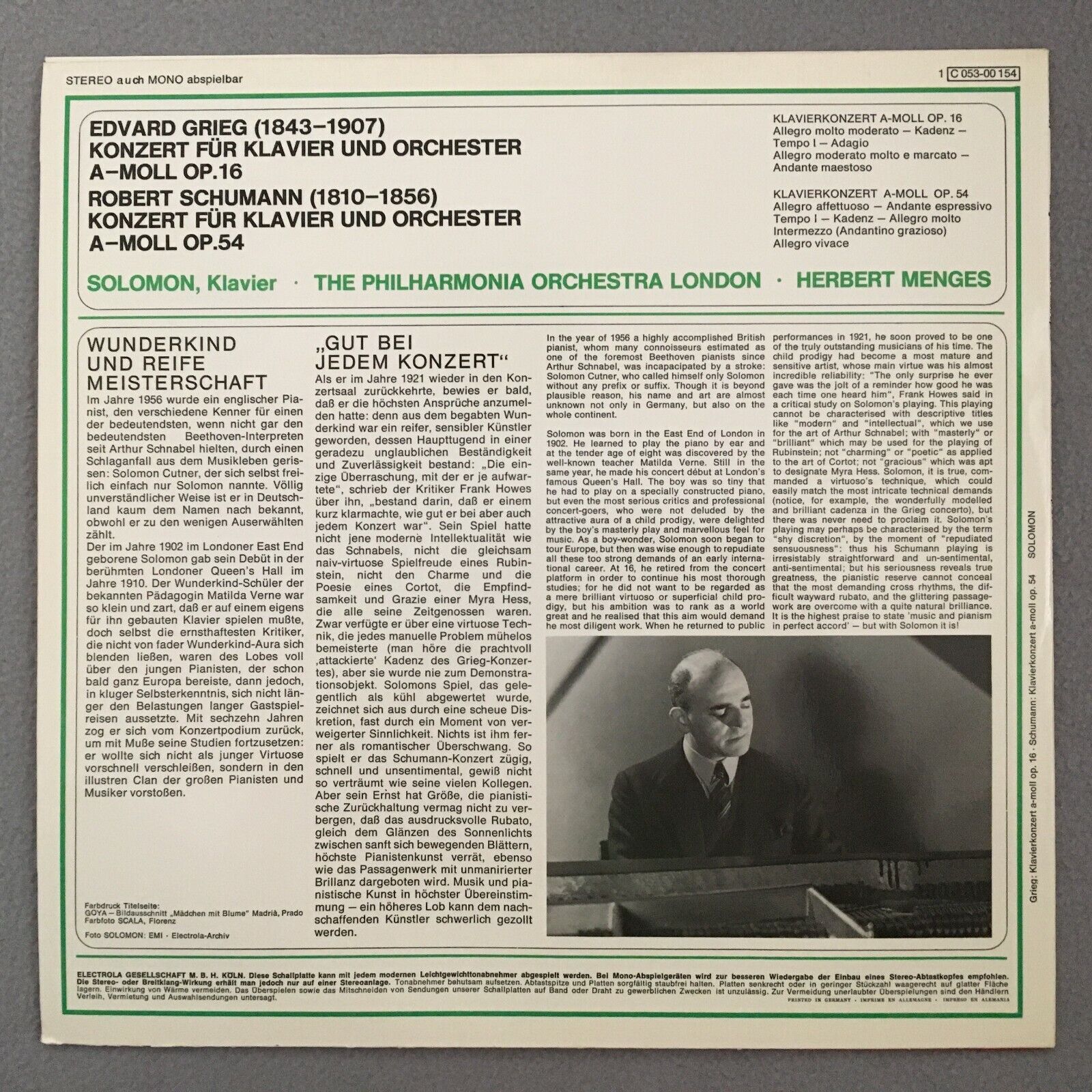 S090 Grieg Schumann Piano Concertos Solomon Menges EMI 1 C 053-00 154 Stereo