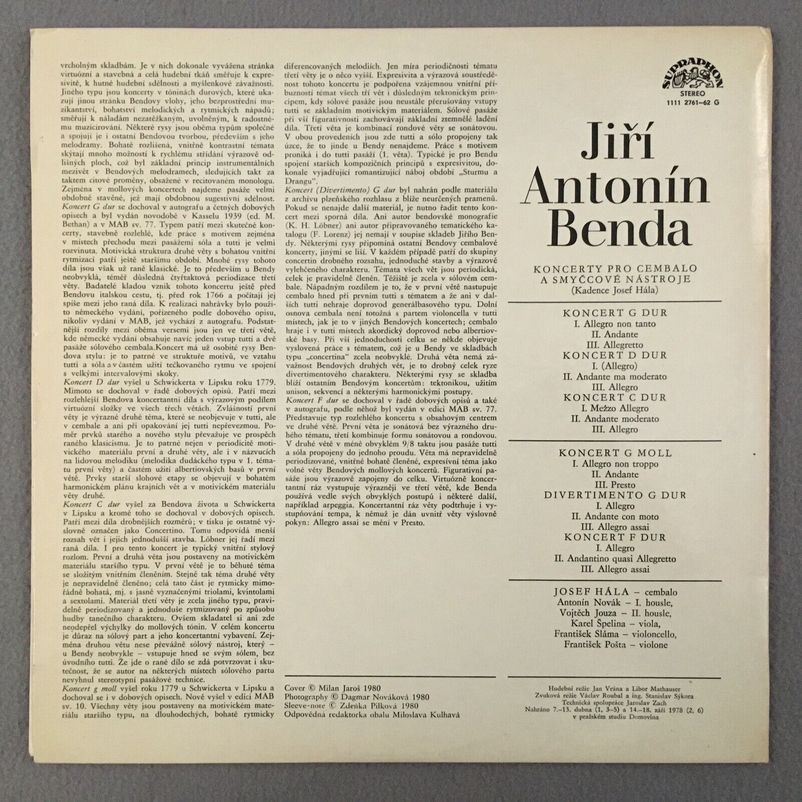 S252 Benda Harpsichord Concerto Hala Novak Supraphon 1111 2761-62 G Stereo