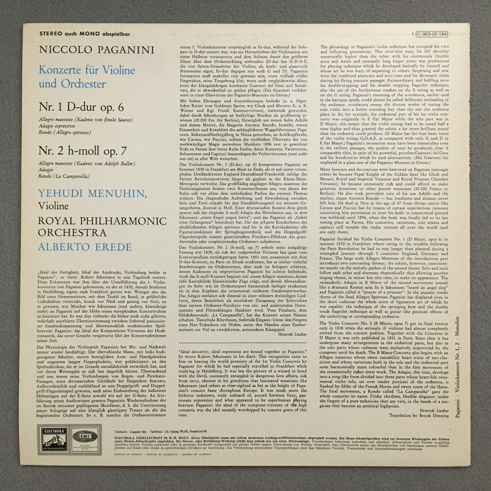 S565 Paganini Violin Concertos No.1 & 2 Menuhin Erede EMI 1 C 063-00 194 Stereo