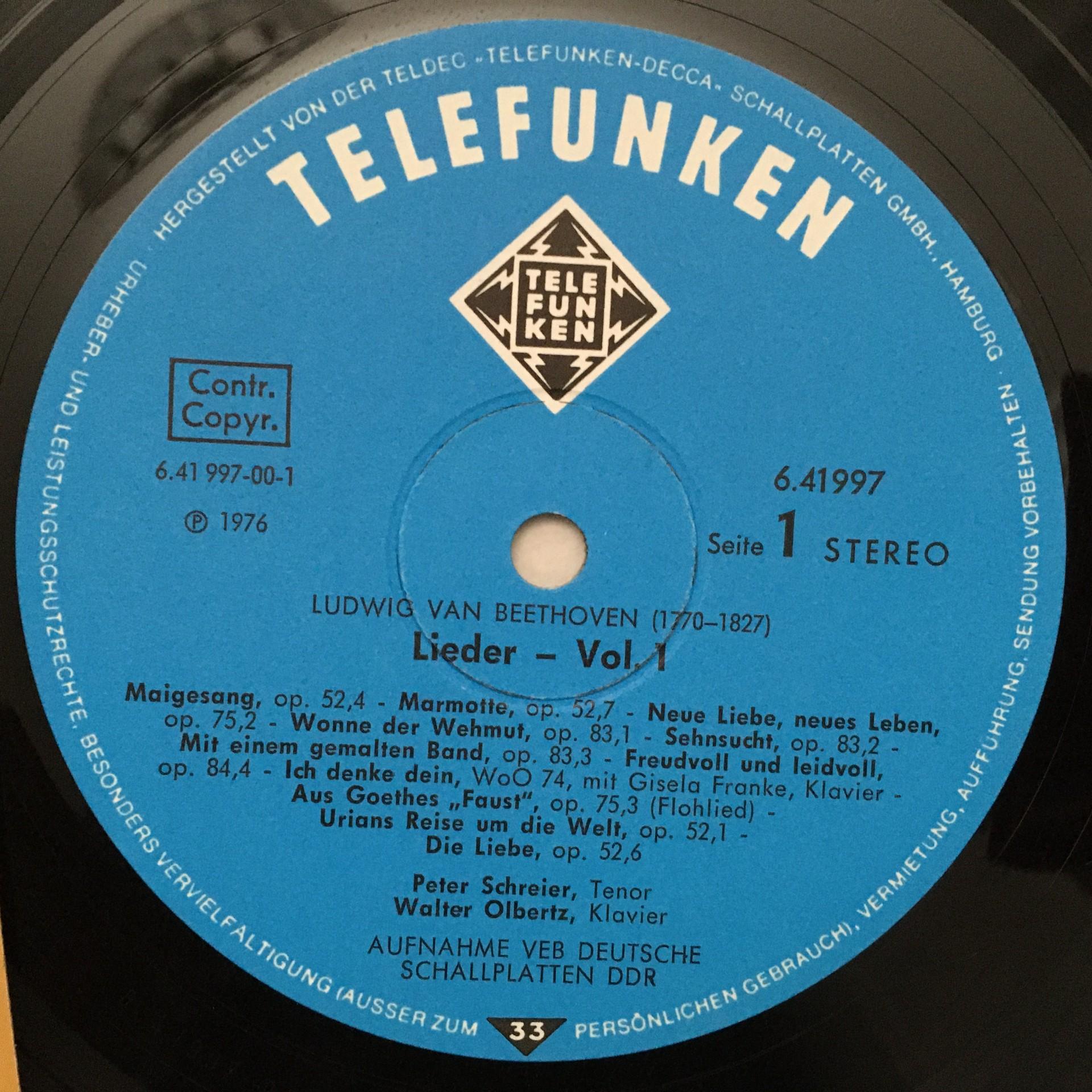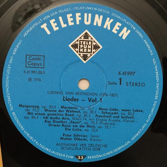 O440 Beethoven Songs Vol.1 Schreier Olbertz Telefunken 6.41997 AP Stereo