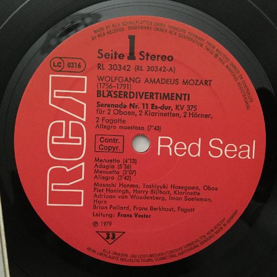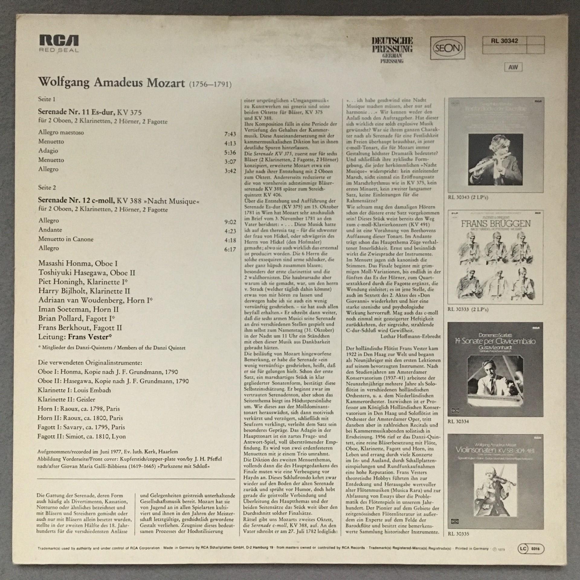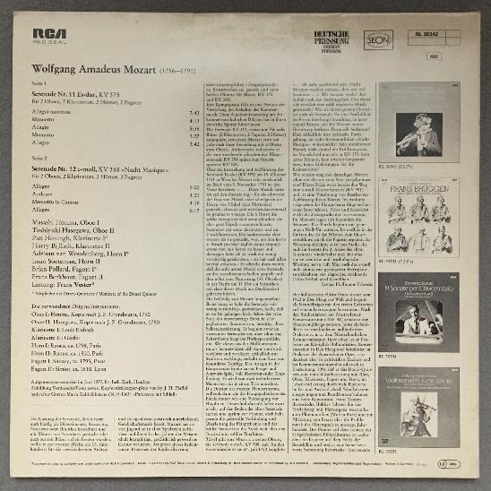 O446 Mozart Wind Divertimenti KV 375 & 388 Danzi Quintet RCA RL 30342 Stereo