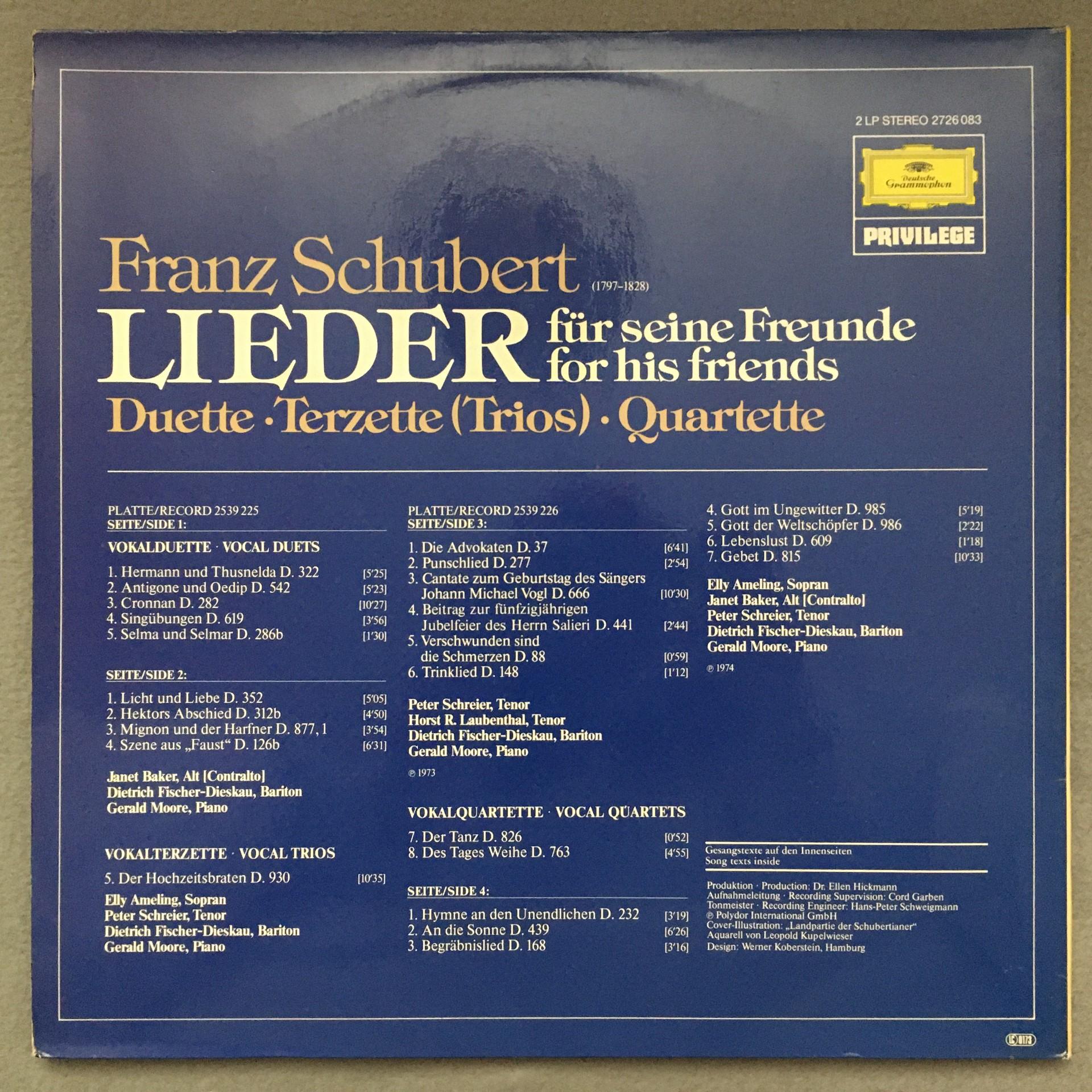 O467 Schubert Songs Ameling Baker Fischer-Dieskau Moore 2LP DGG 2726 083 Stereo