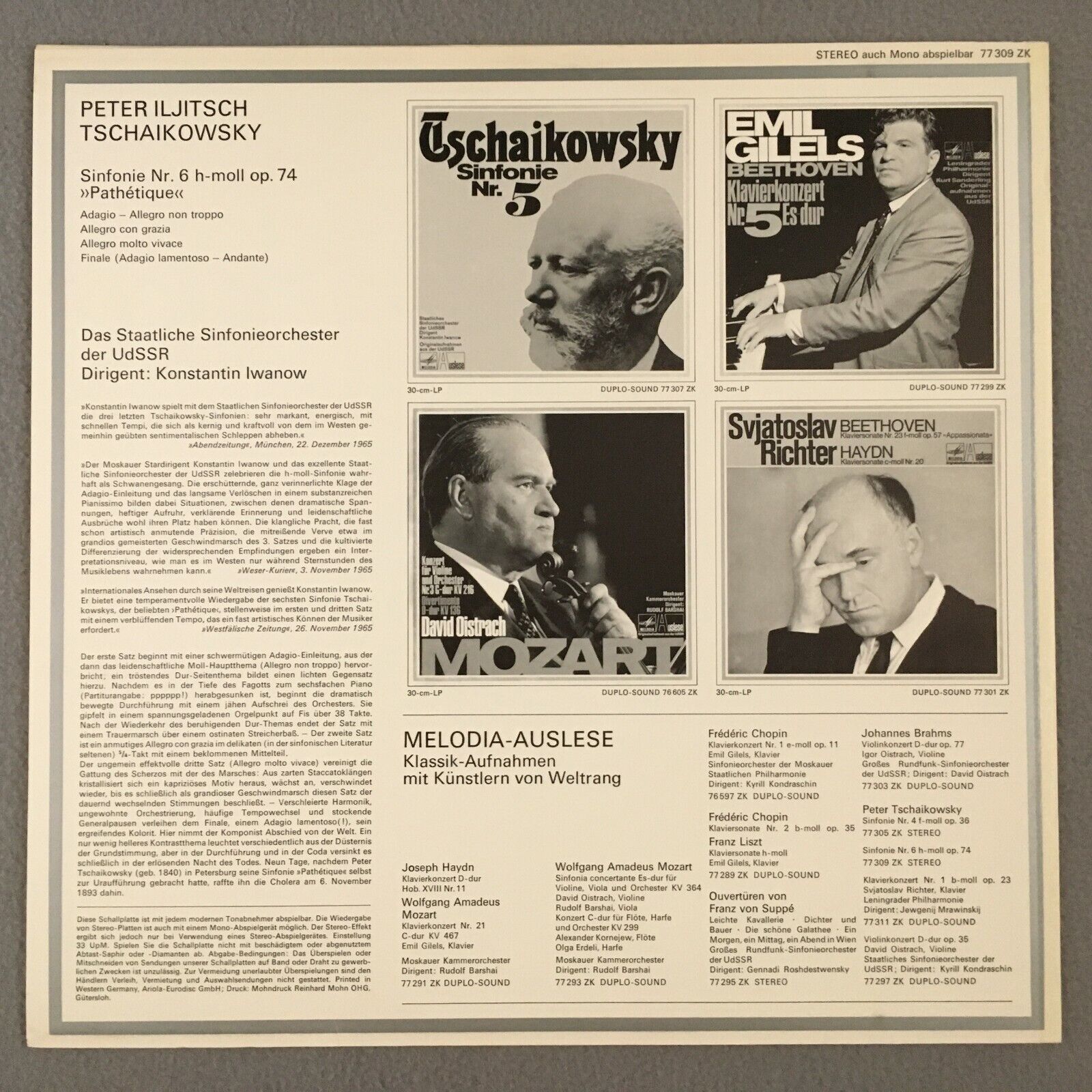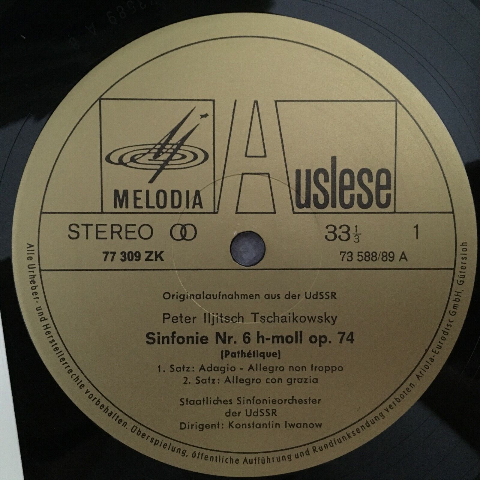 R922 Tchaikovsky Symphony No.6 Iwanow Melodiya 77 309 ZK Stereo