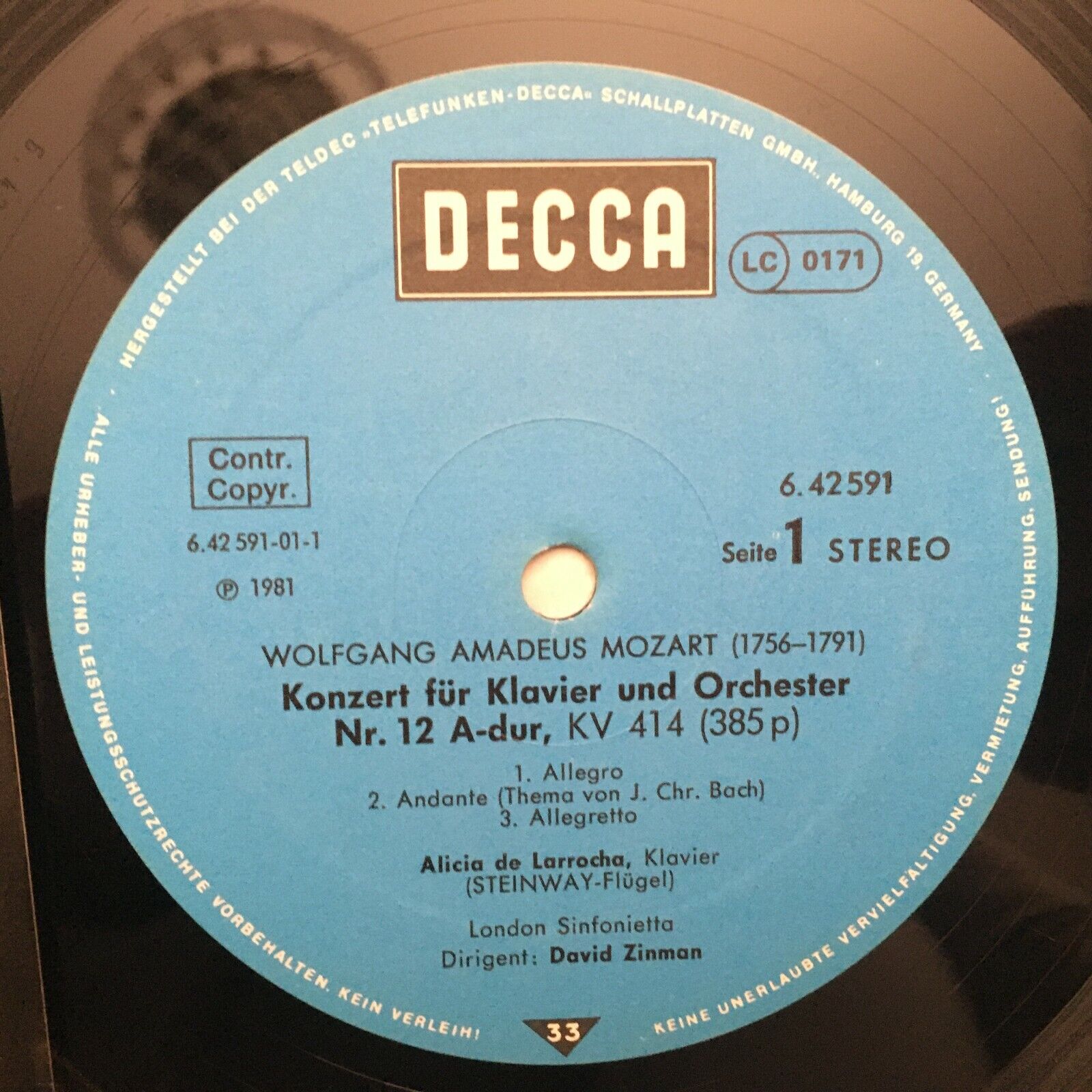 R018 De Larrocha Piano Concertos Mozart Bach Zinman DECCA 6.42591 AW Stereo